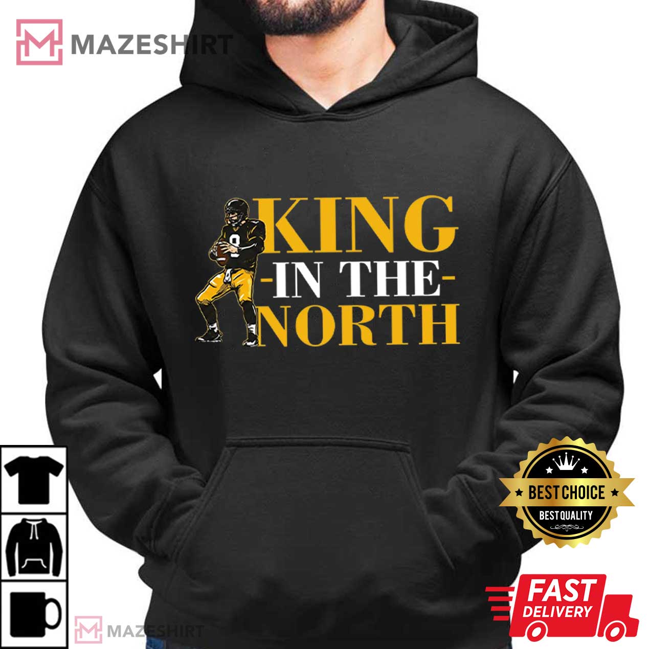 The Aaron Rodgers Pittsburgh Steelers King In The North Football T-Shirt is meant to get people talking as soon as you walk into the room. This shirt mixes football myths with modern NFL fans. It captures the idea of total control over the AFC North, with a crown earned by skill, expertise, and staying calm under pressure.