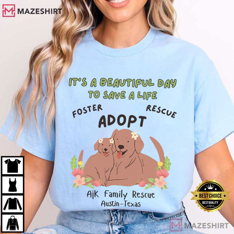 Ajk Family Rescue It's A Beautiful Day To Save A Life Dog Lovers T-Shirt – graphic tees men, graphic tees women, unique graphic t shirts