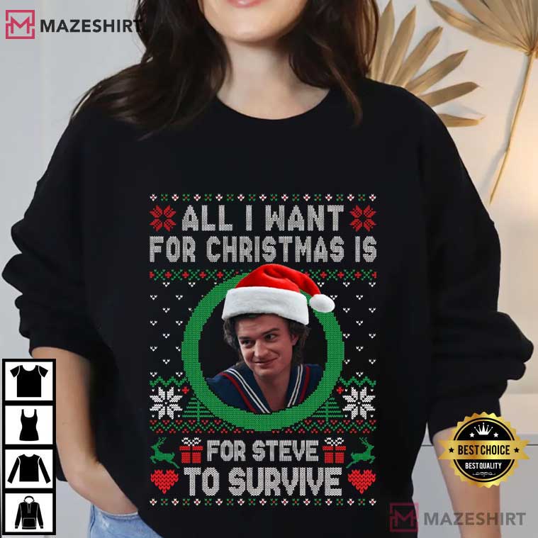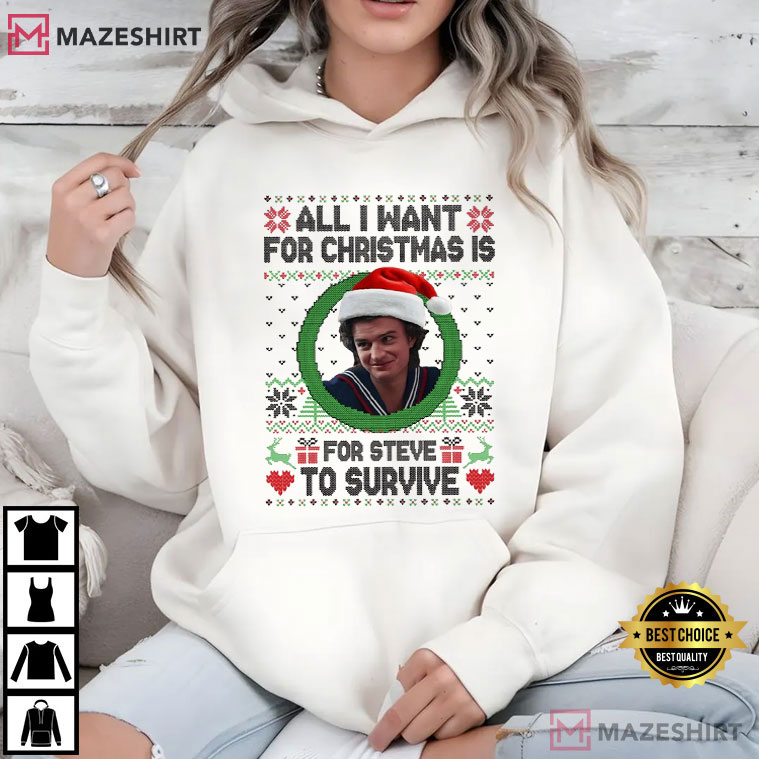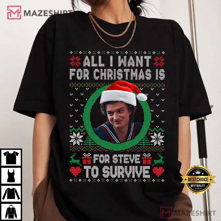 All I Want For Christmas Is For Steve To Survive Stranger Things T-Shirt – funny movie t shirts, vintage 80s movie t-shirts
