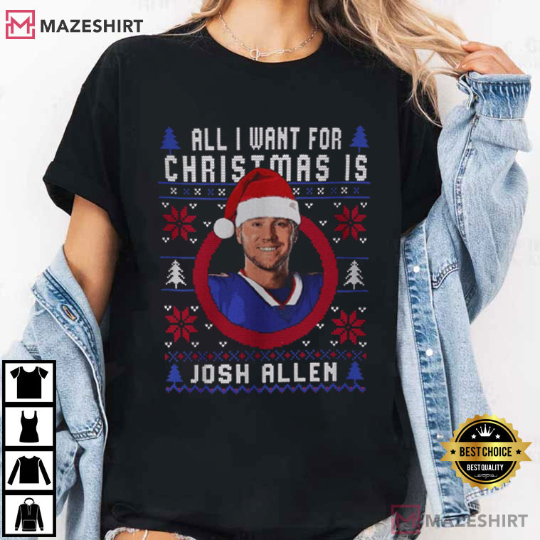 All I Want For Christmas Is Josh Allen Funny Football T-Shirt
