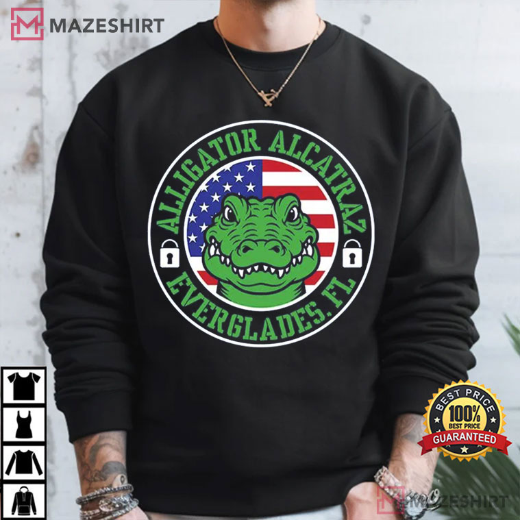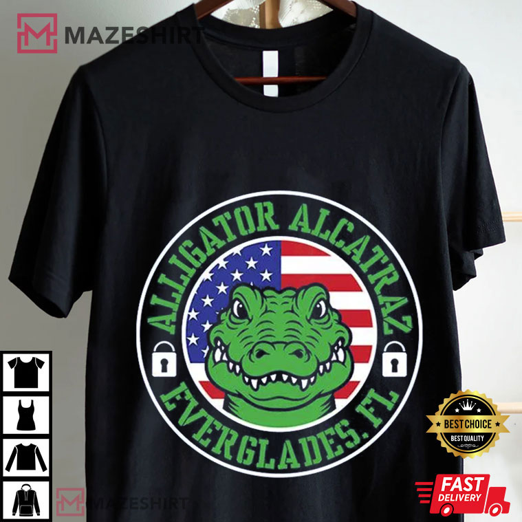 If you enjoy Florida’s wild side and want to have some fun, you need to get the Alligator Alcatraz Everglades Florida Political American Flag T-Shirt. This Florida T-Shirt has a powerful green alligator wearing the American flag like a badge of honor and is surrounded by the words “Alligator Alcatraz Everglades FL.” It’s a fun way to show off the state’s wild side. This shirt is great for political discussions, swamp excursions, or just showing off your Gator passion. It’s made of soft, strong cotton that can handle anything.