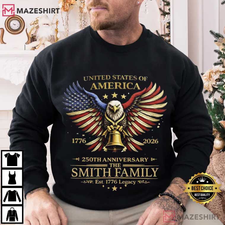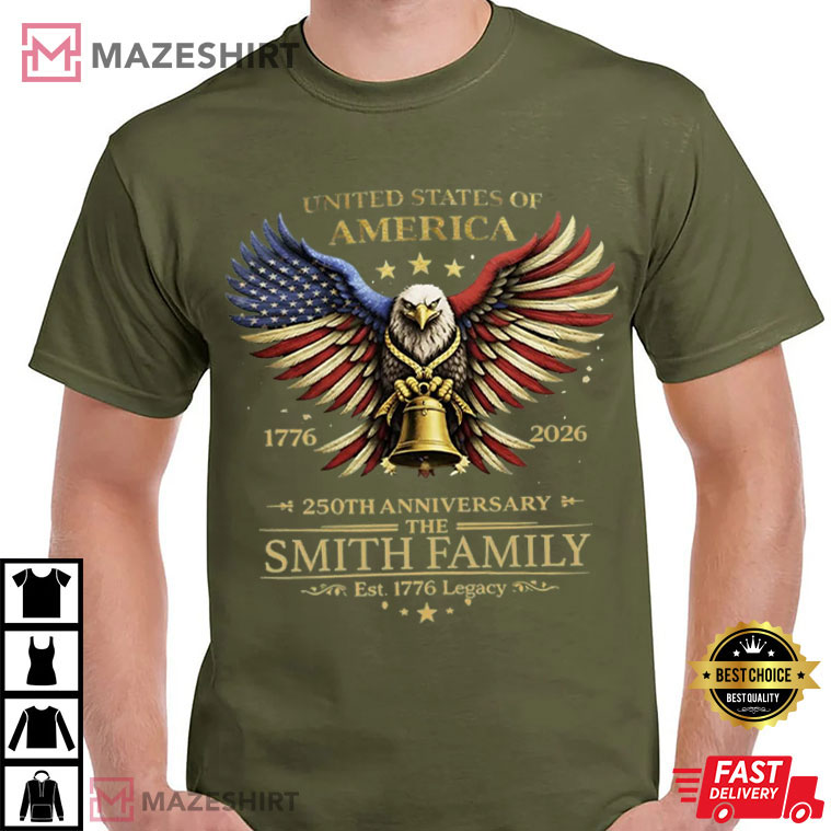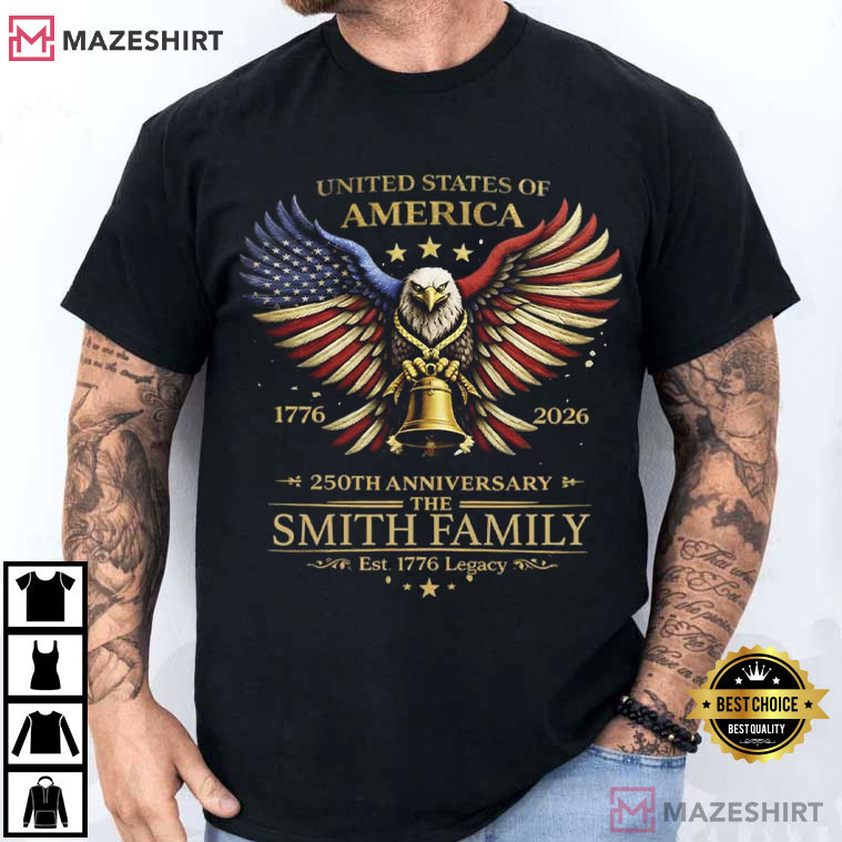 America 250 Years Anniversary Custom Family Name Patriotic T-Shirt