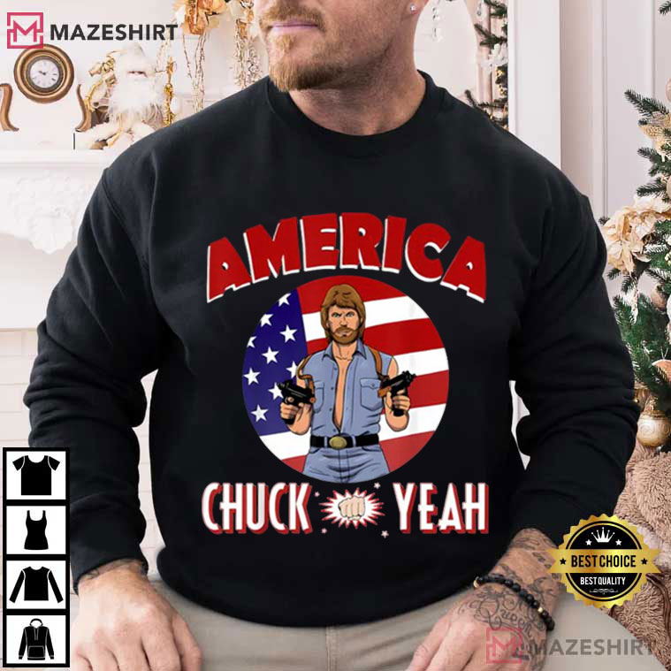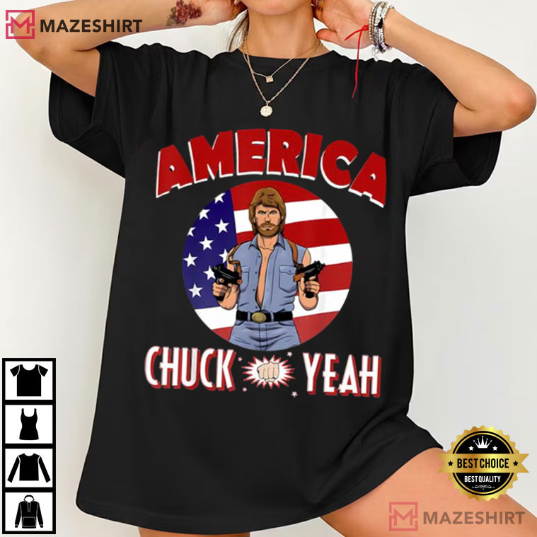 The America Chuck Yeah Patriotic T-Shirt is perfect for people who like bold comedy and shameless patriotism. This design is loud, fun, and easy to spot. It combines old American patriotism with a pop culture attitude, making it suitable for any summer event.