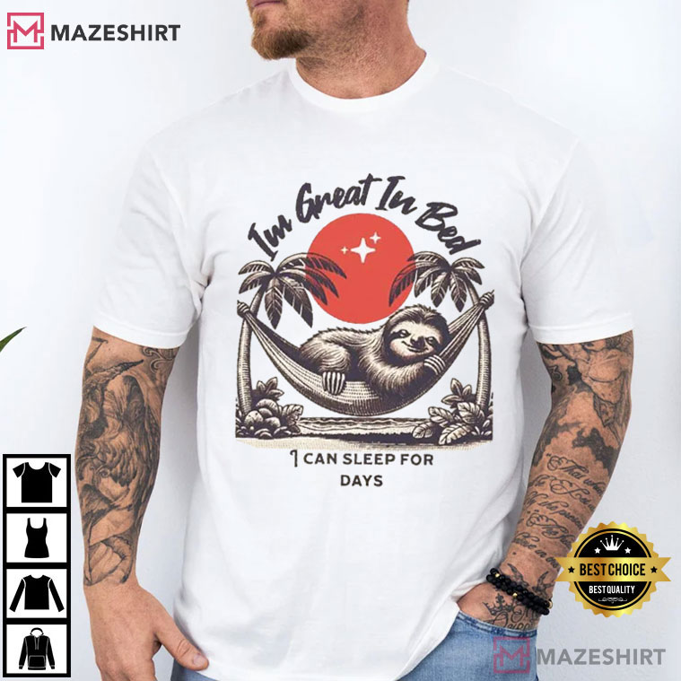 Animal Sloth I'm Great In Bed I Can Sleep All Day Funny T-Shirt – graphic tees men, graphic tees women, unique graphic t shirts