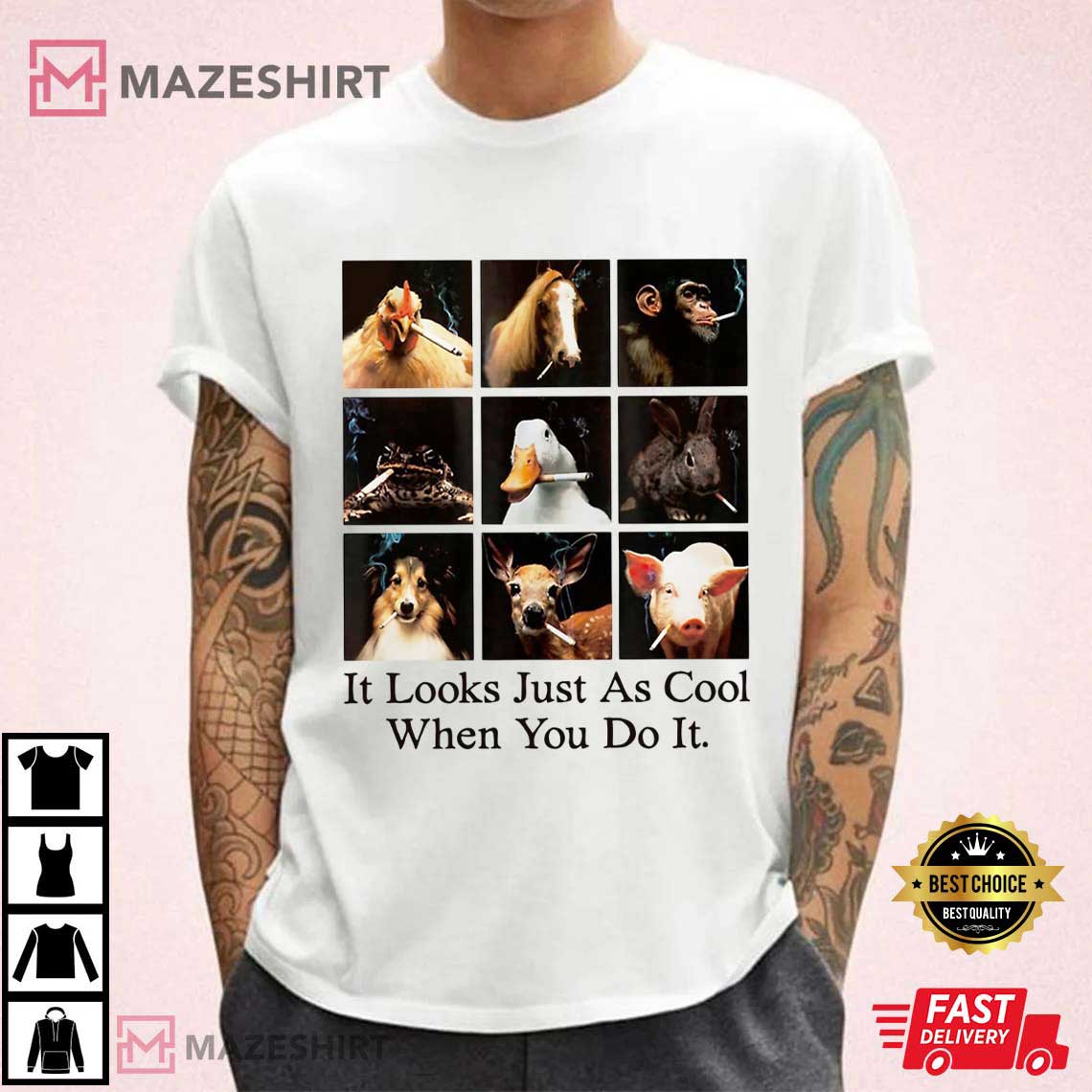 Animals It Looks Just As Cool When You Do It Meme T-Shirt – graphic tees men, graphic tees women, unique graphic t shirts
