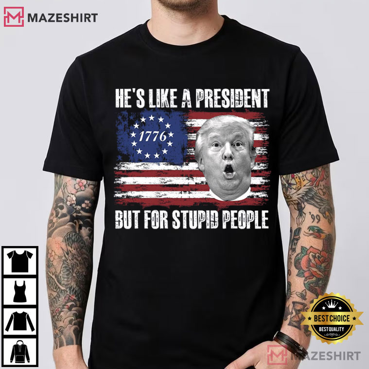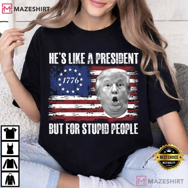 The Anti Trump He’s Like A President But For Stupid People T-Shirt makes a statement that can’t be missed if you like to be bold, unapologetic, and a little bit offensive. This is more than simply clothing; it’s wearable commentary for those who aren’t scared to say what they think.