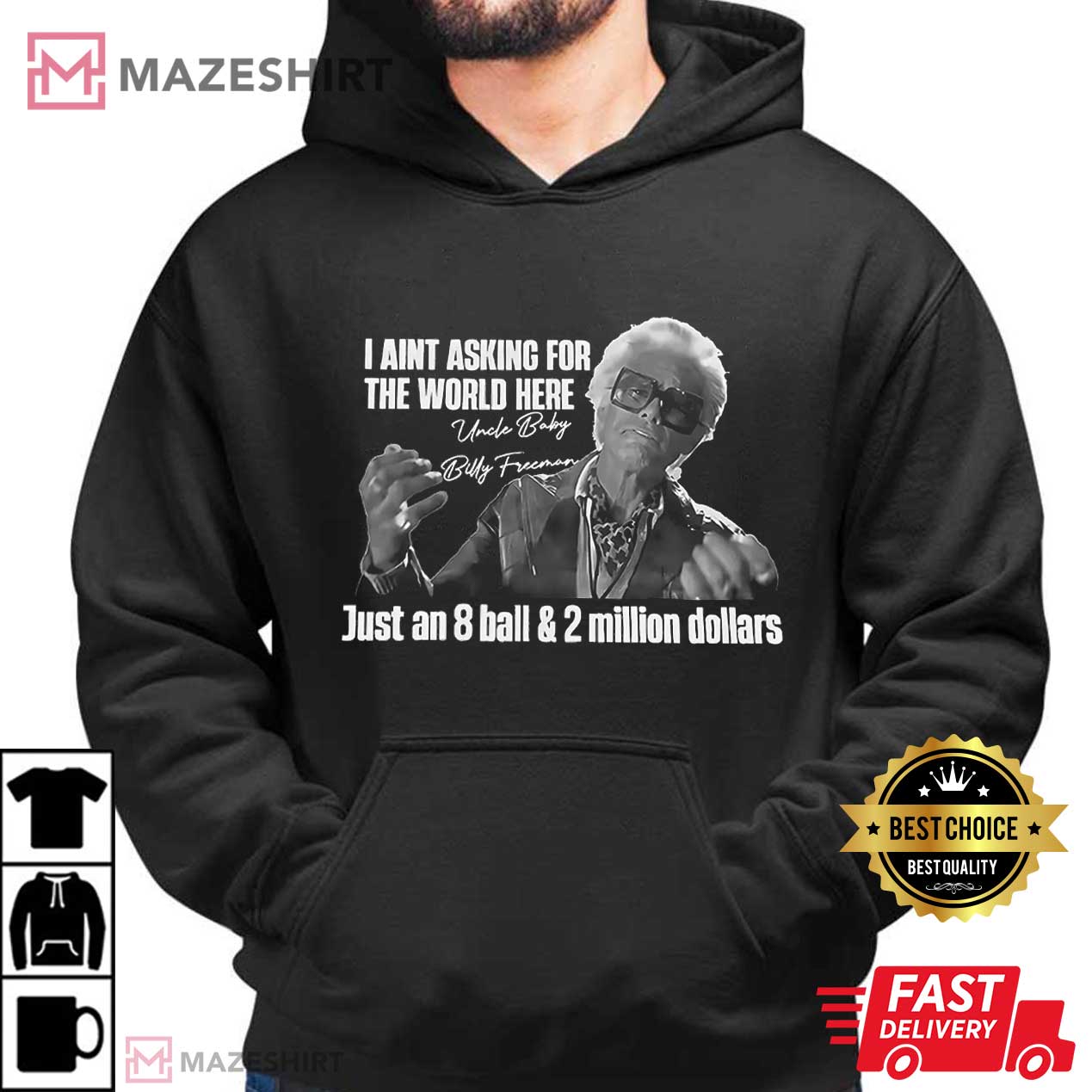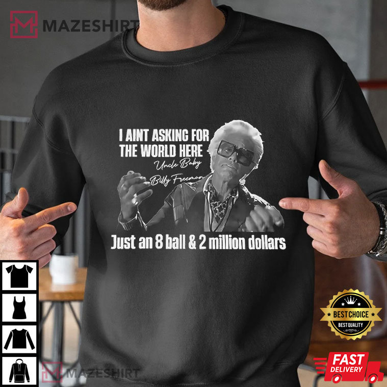 This tee is one of those jokes that hits right away if you like The Righteous Gemstones. The Baby Billy 8 Ball & 2 Million Dollars Funny Show T-Shirt has a big black-and-white picture of Baby Billy Freeman on it. He has his trademark swagger, sunglasses, and the dramatic preacher energy he adds to every scene. The front has the quotation “I ain’t asking for the world here… just an 8 ball and 2 million dollars,” which is a subtle reference to one of the most crazy and quotable parts of the show.