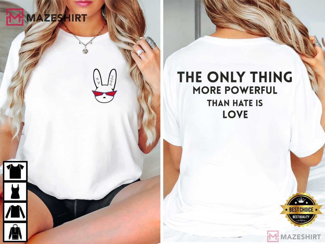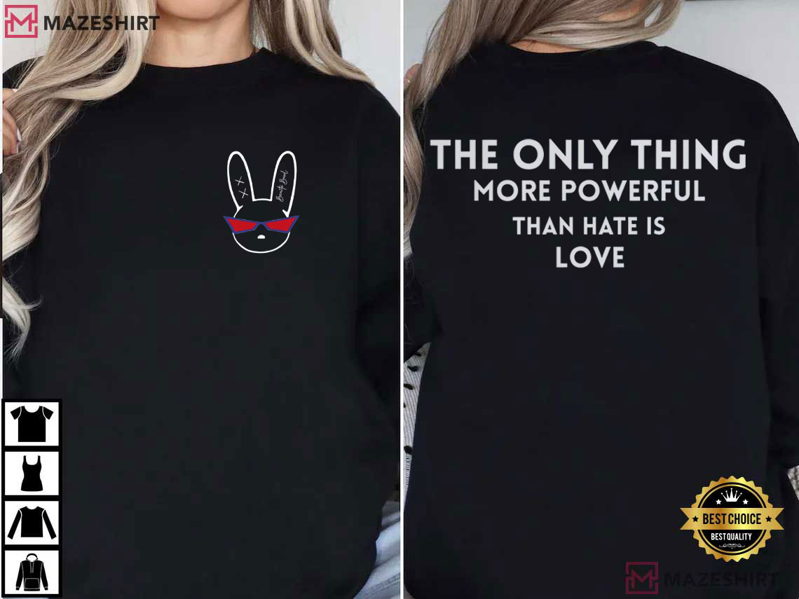 Bad Bunny Bowl The Only Thing More Powerful Than Hate Is Love T-Shirt – music tee shirts, concert tour t shirts