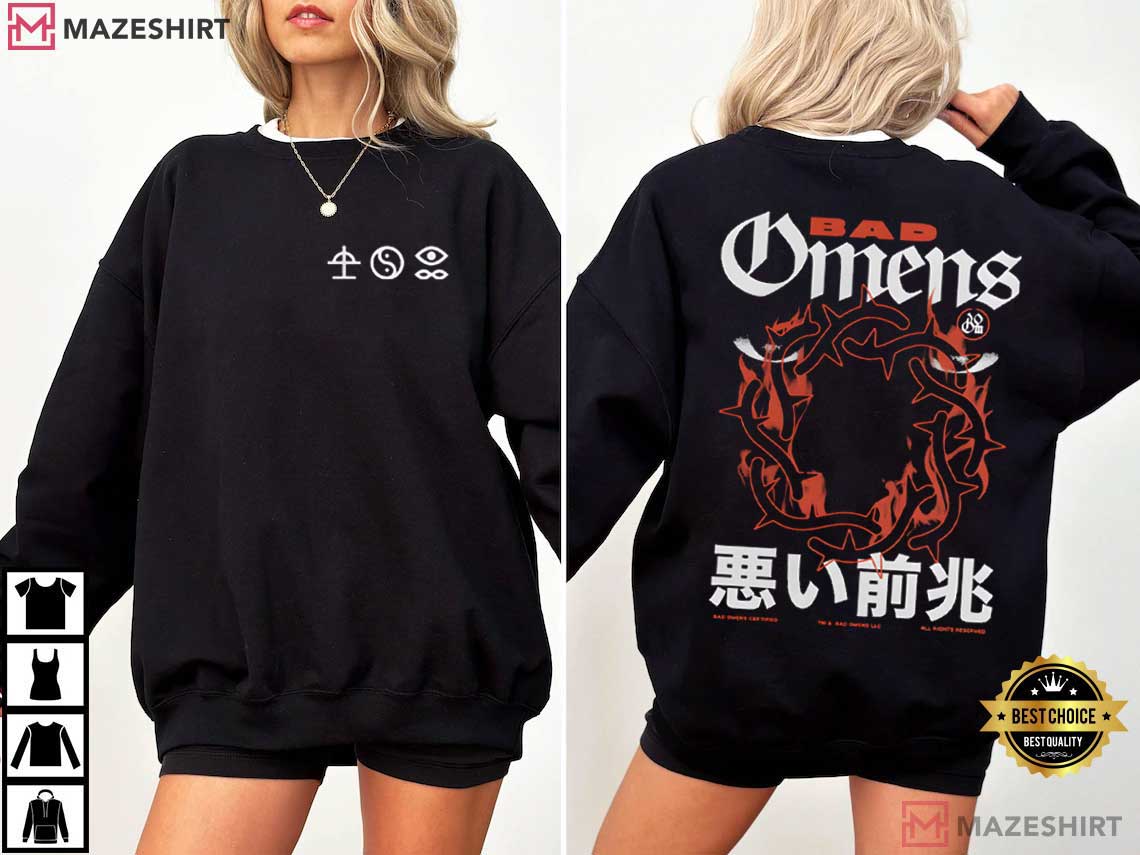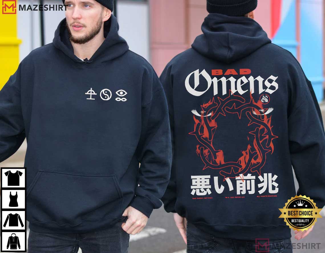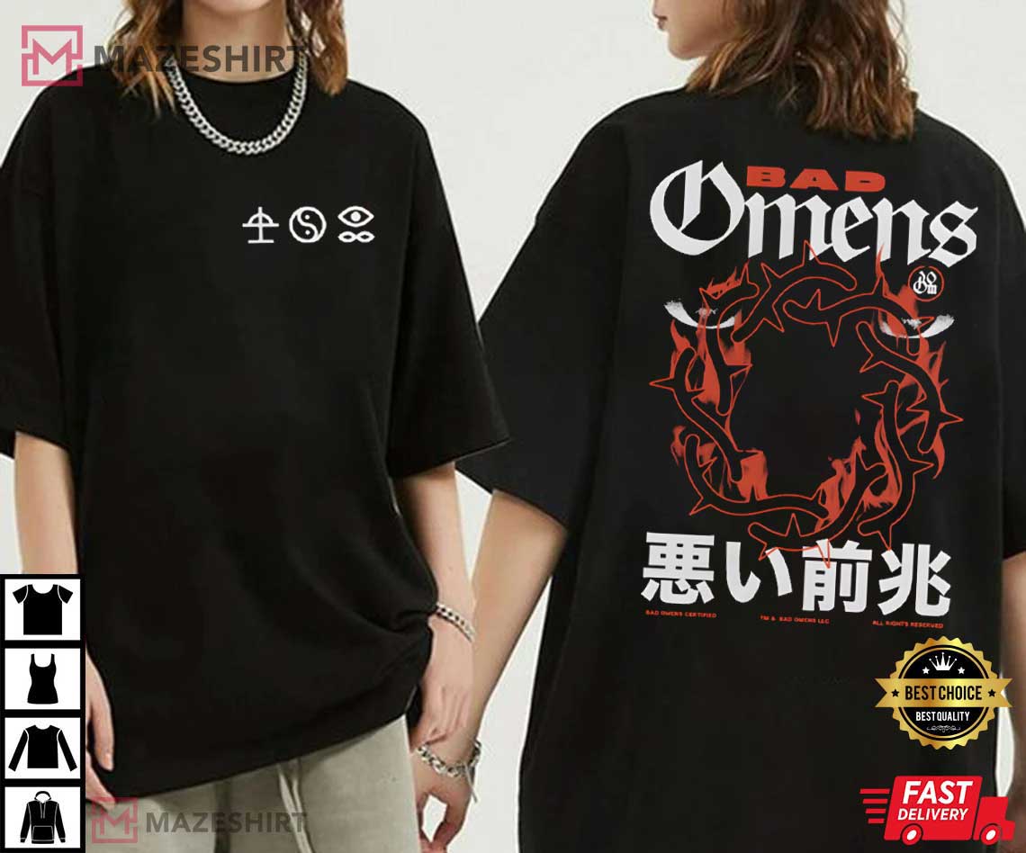 The Bad Omens Modern Metalcore Band Metal Dark T-Shirt is a bold item of clothing that fans of modern heavy music will love. The front has gloomy symbolic imagery and the reverse has an intense thorn-crown style illustration. The design represents the moody look and emotional depth that Bad Omens’ music has.