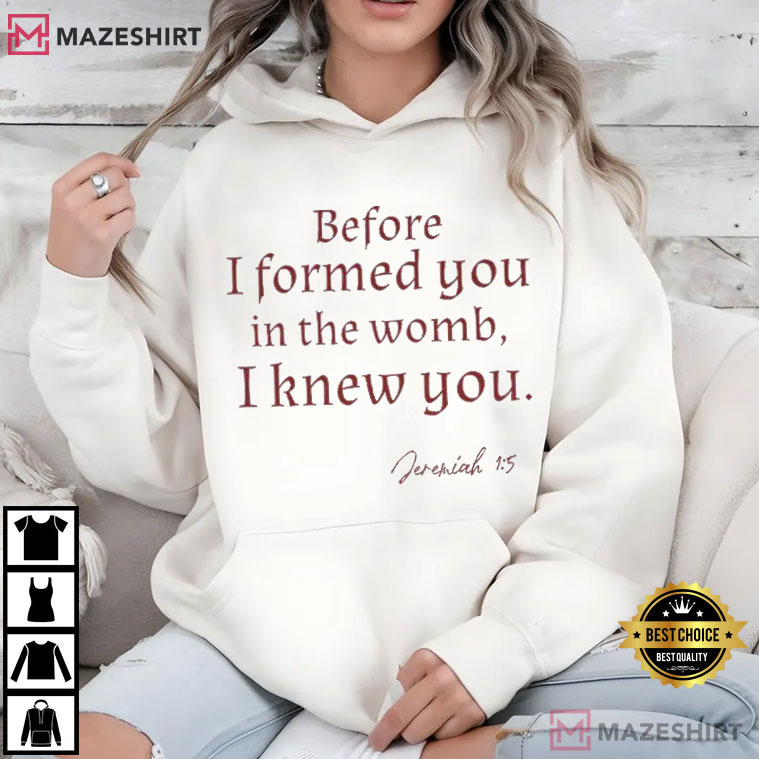 The Before I Formed You Jeremiah 1:5 Scripture T-Shirt has one of the most soothing and identity-shaping promises in the Bible.