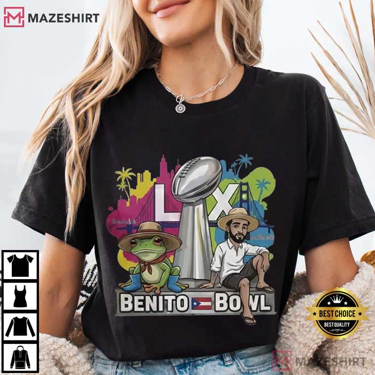 It’s not simply a time when music, culture, and sports come together; it’s a movement. The Benito Bowl 2026 Puerto Rico Sporty Latin Pride T-Shirt has a bright, vivid design that shows off Caribbean pride and the excitement of the crossover.