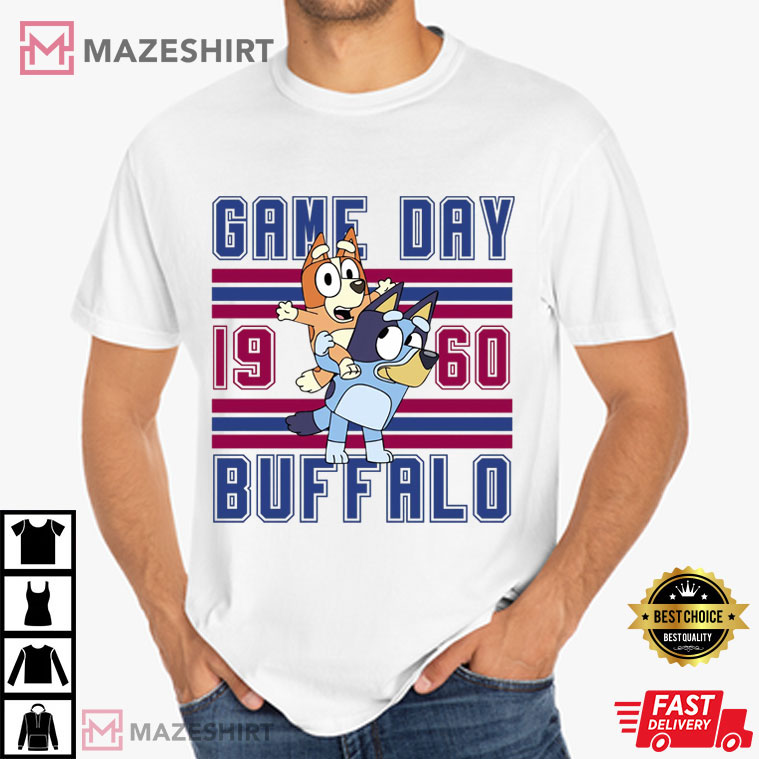 Bluey Dog And Bingo Cartoon Game Day Buffalo Football T-Shirt – NFL shirt, NFL t shirts