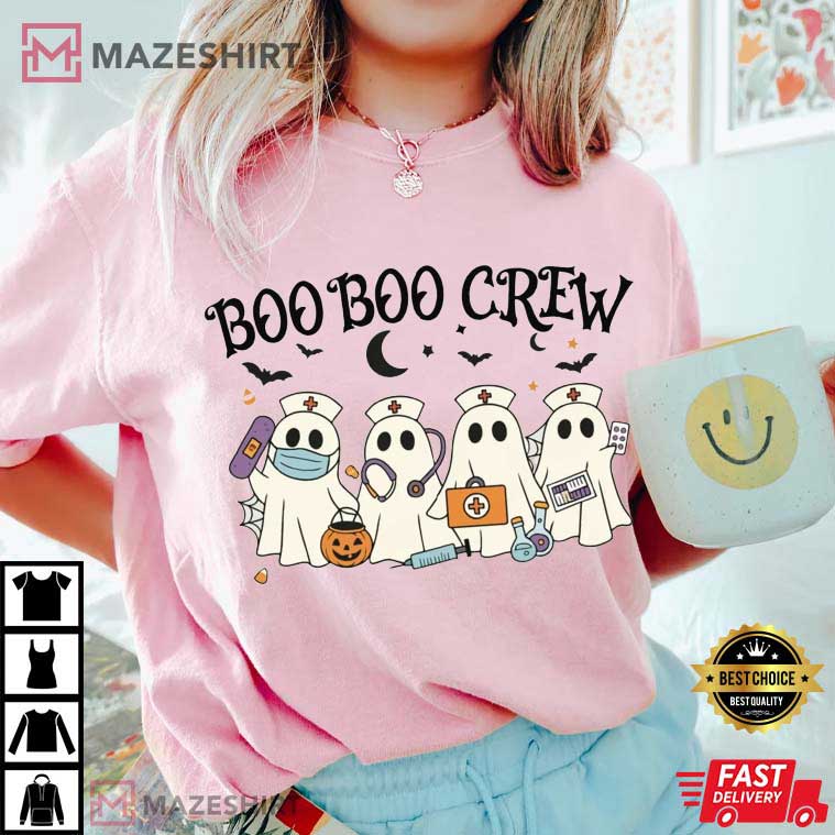 Boo Boo Crew Halloween Nurse Ghost Spooky Season T-Shirt – halloween themed shirts