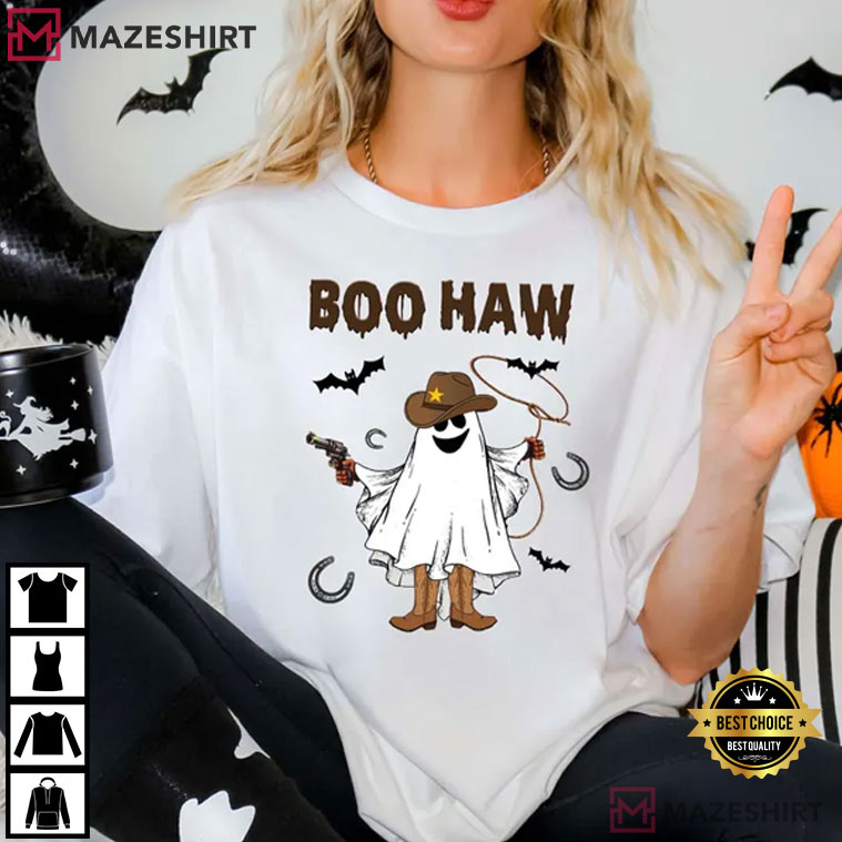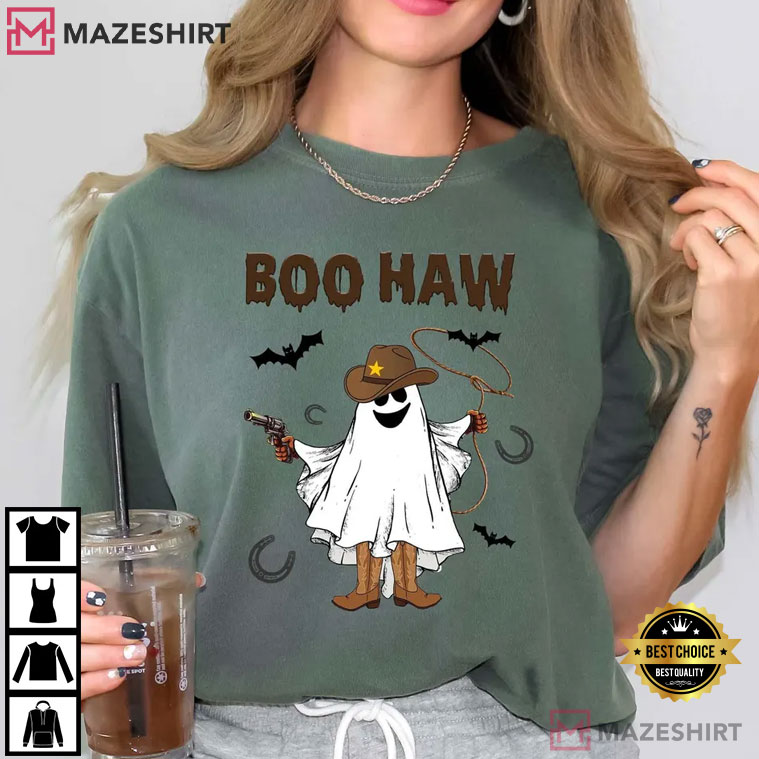 Boo Haw Funny Ghost Cowboy Western Halloween Comfort Colors T-Shirt – halloween themed shirts