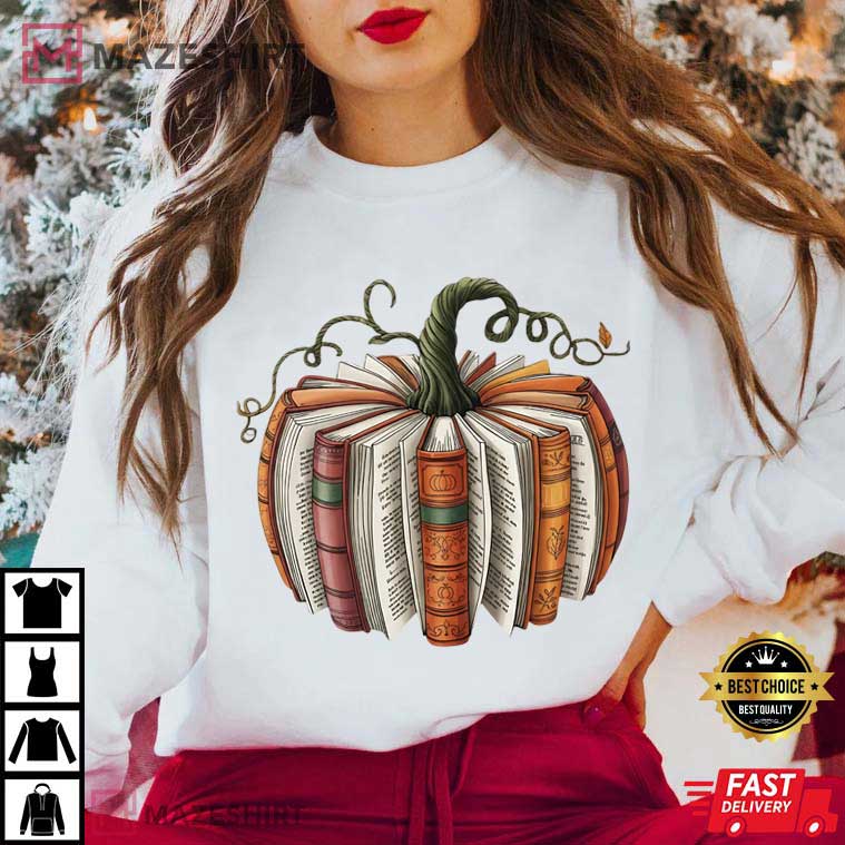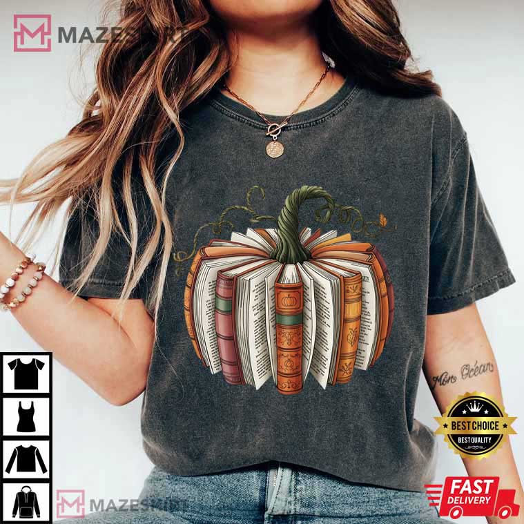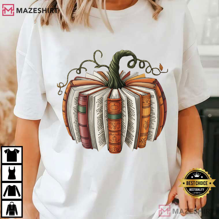 Book Fall Pumpkin Teacher Book Lovers T-Shirt – Teacher Gifts