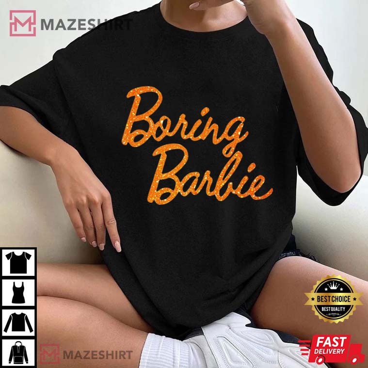 This shirt turns the tables and says, “Yes, I’m boring—very boring.” This shirt is a nod to the modern-day anti-Barbie movement, where being real is better than being flawless and confidence shines through the crowd. It’s inspired by the brilliant Showgirl Era look that has swept over mainstream culture. It has a fun design and a little bit of Swiftie-meets-Barbie spirit, making it the right mix of humor, empowerment, and easy style.