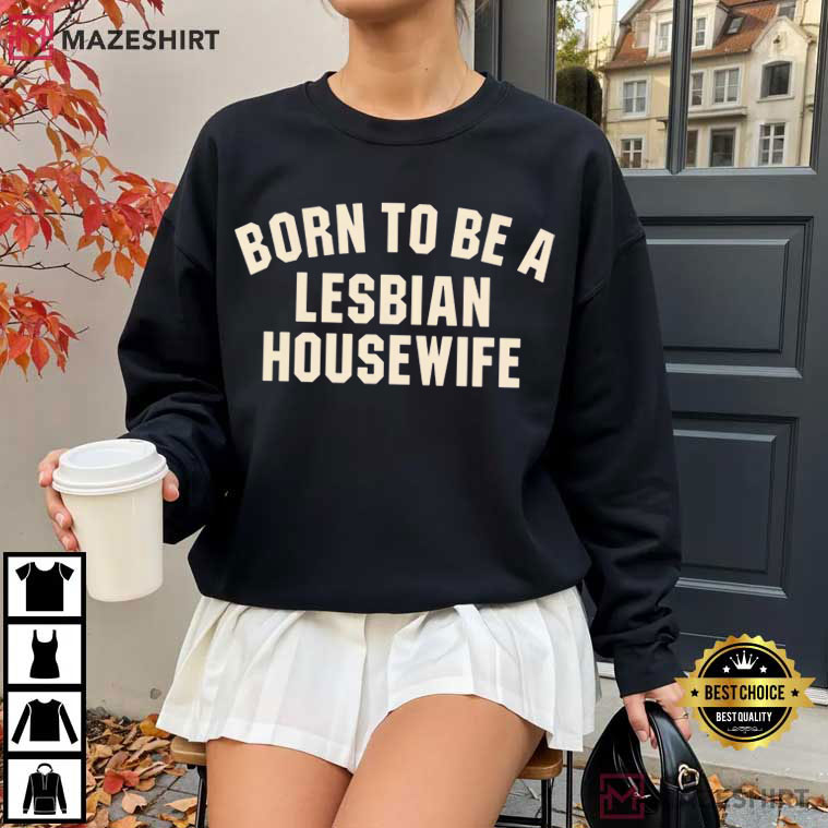 The shirt has a clear, strong text in the middle that says, “Born To Be A Lesbian Housewife.” There aren’t any complex graphics here; simply strong letters that let the message do all the work.