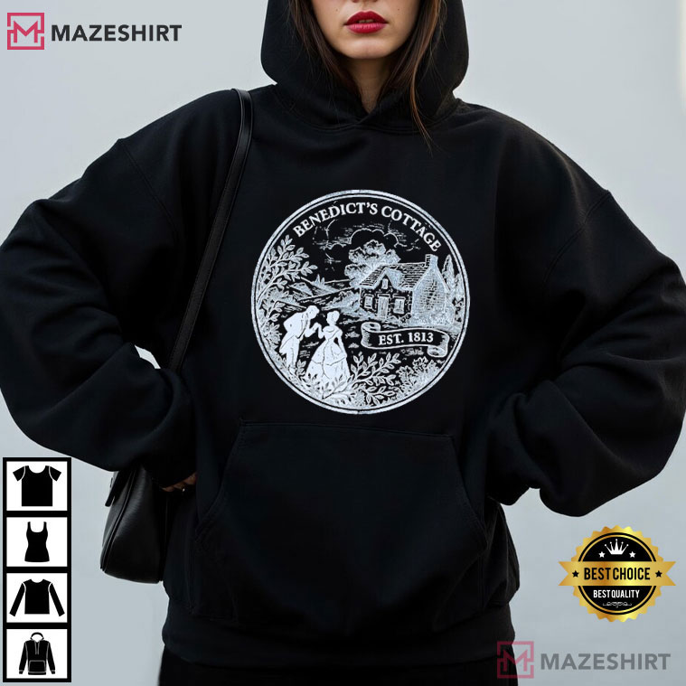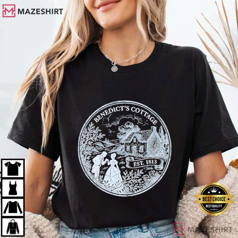The Bridgerton Season 4 Toile De Jouy Benedict’s Cottage T-Shirt is a love letter to the more peaceful, romantic, and artistic portions of the Bridgerton world. This design is inspired by the beautiful countryside and deep emotions of Bridgerton. It gives off the same atmosphere that fans get from Benedict’s story: thoughtful, innovative, and a little bit different from the flashy craziness of the ton.