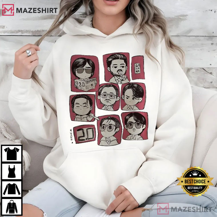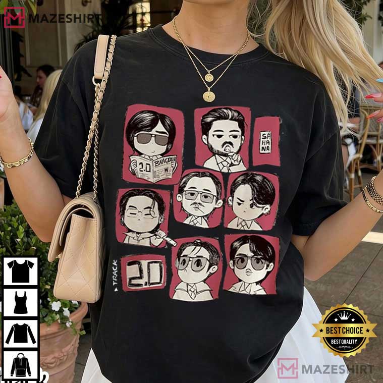 The shirt has a neat grid pattern, and each figure stands for a distinct mood or style. It seems like a small group of BTS experiences. It’s fun, playful, and perfect for fans who favor the group’s softer, more fun side.