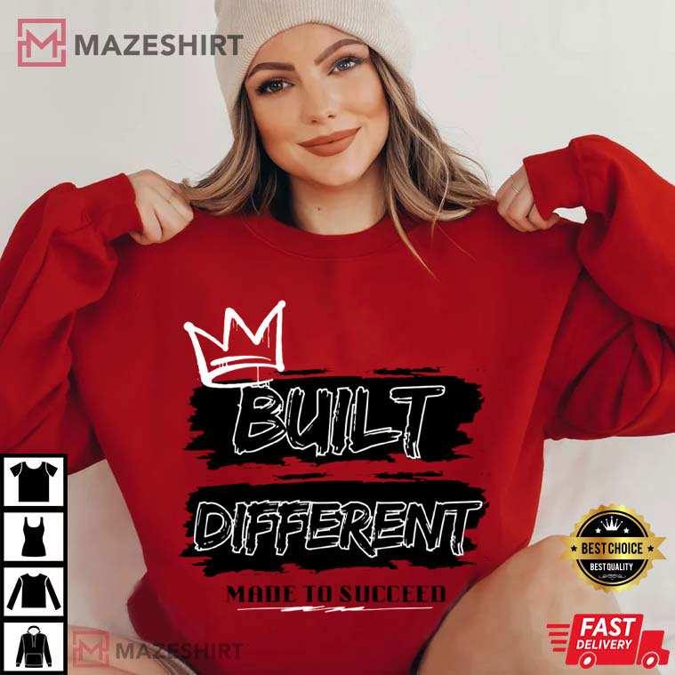 The powerful font and crown image make it apparent that the design says, “Built Different—Made To Succeed.” It’s a statement piece for people who are different, break rules, and proudly embrace sneaker culture.