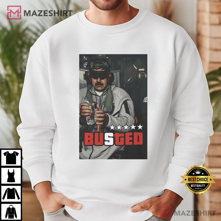 The Busted Venezuela Maduro Captured 2026 T-Shirt lets you turn a big news story into a bold statement item. This design combines interesting pictures with the energy of memes that are popular right now. The famous photo of Nicolás Maduro, the president of Venezuela, is in the middle, and the phrase “BUSTED” is stamped below it. This makes it stand out and easy to spot.