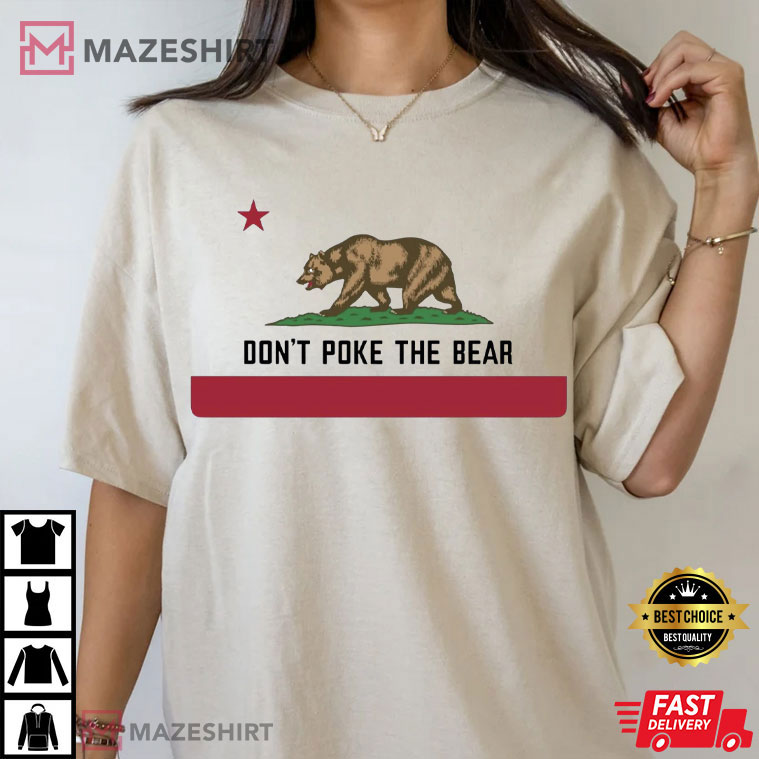 Hello, Golden State fans and freedom-loving people! This California Bear Don’t Poke The Bear CA State Flag Anti-Trump T-Shirt is your new favorite if you’ve ever thought that the state’s spirit needs a bit more roar. Imagine this: You’re wearing a t-shirt that exudes pride, defiance, and a hint of humor as you walk down the Pacific Coast Highway as the sun sets. This shirt isn’t just ordinary shirt; it’s a wearable statement that combines a lighthearted satire of political tension with the famous California state flag.