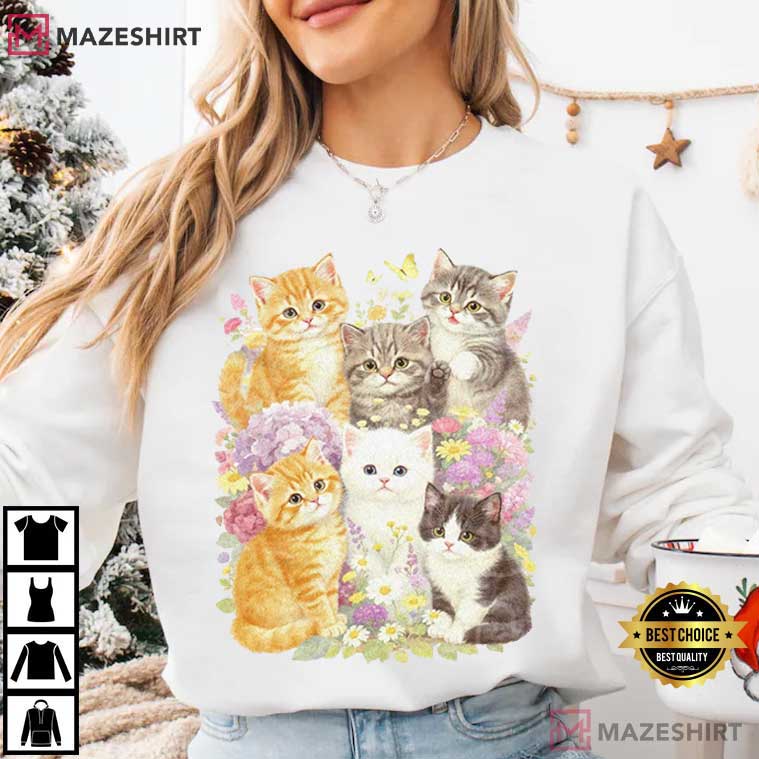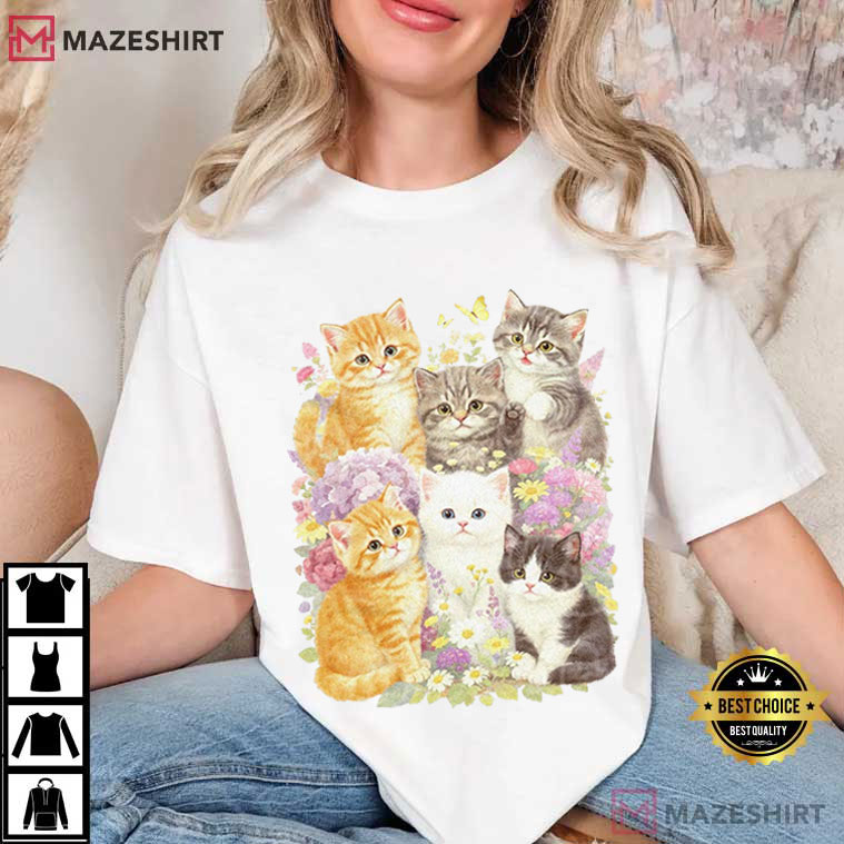 Cat Lovers Floral Retro Kitten T-Shirt