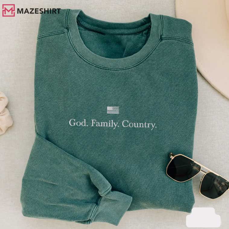 Charlie Kirk God Family Country Embroidered Sweatshirt custom embroidered sweatshirts, personalised embroidered sweatshirts, embroidered crewneck