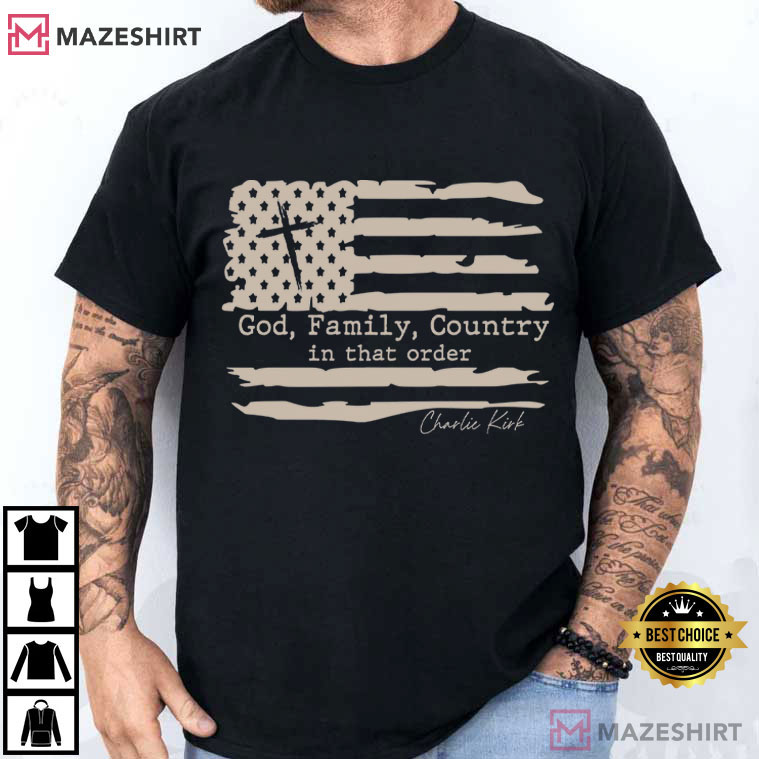 Charlie Kirk God Family Country Patriot Flag Freedom T-Shirt – graphic tees men, graphic tees women
