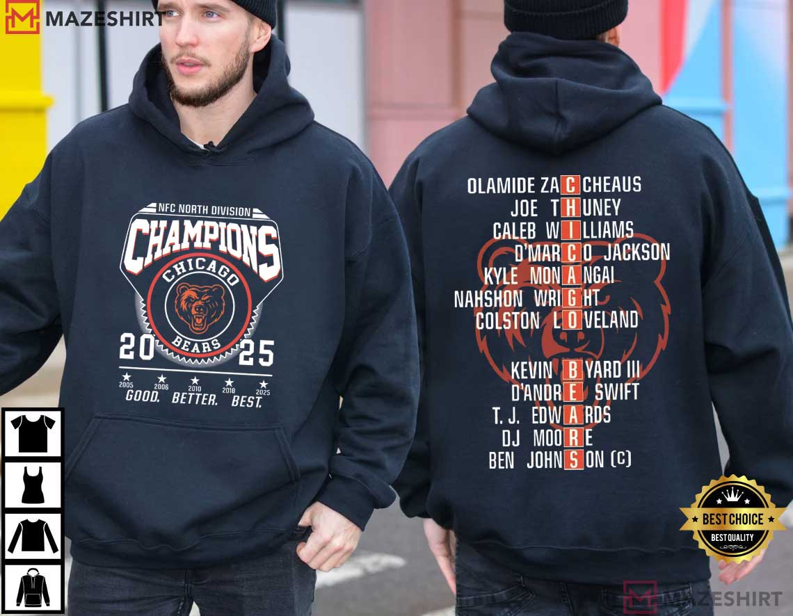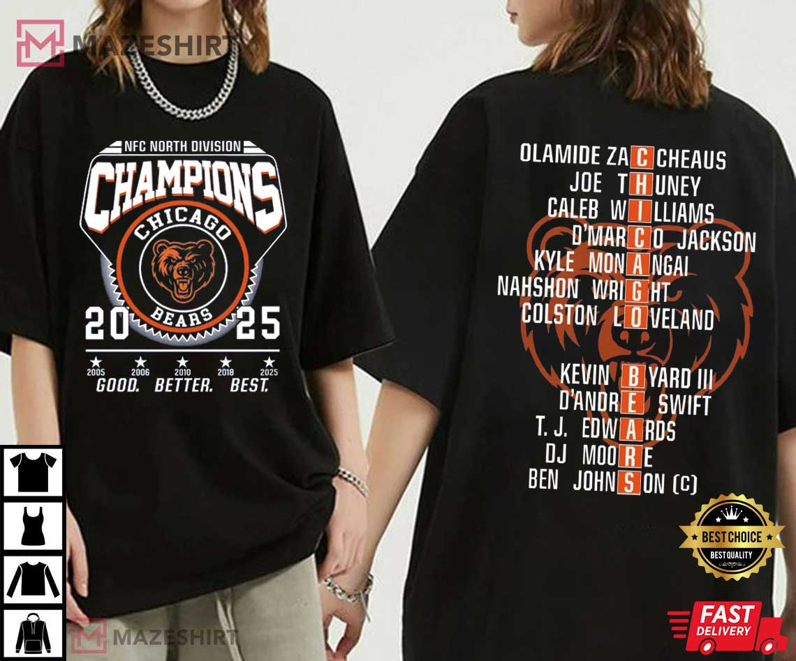 .The Chicago Football 2025 NFC North Champions T-Shirt is a bold way for fans to show their passion, hope, and love of Chicago football. This shirt combines the spirit of a victory with the style of modern streetwear. It’s for fans that trust in the team’s path and want to show it off.