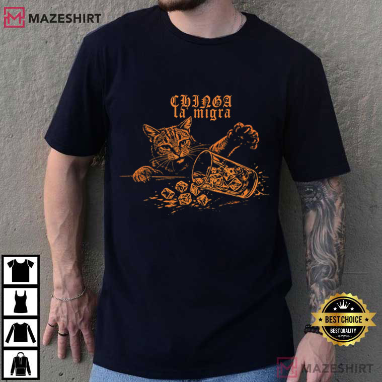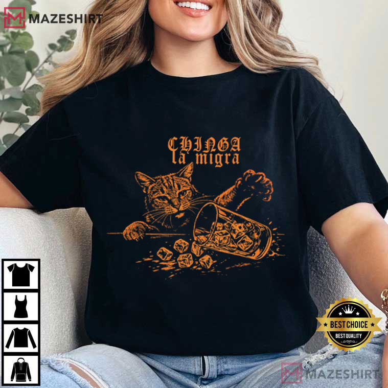 The Chinga La Migra Cat Anti ICE Political Protest T-Shirt has a lot of activism, dark comedy, and street art style. The objective of this design is that it’s not subtle. The words “Chinga la migra” is written above a picture of a naughty cat knocking over a glass of ice. The art mixes metaphor, humor, and cultural expression to make a political stance into something you can wear.