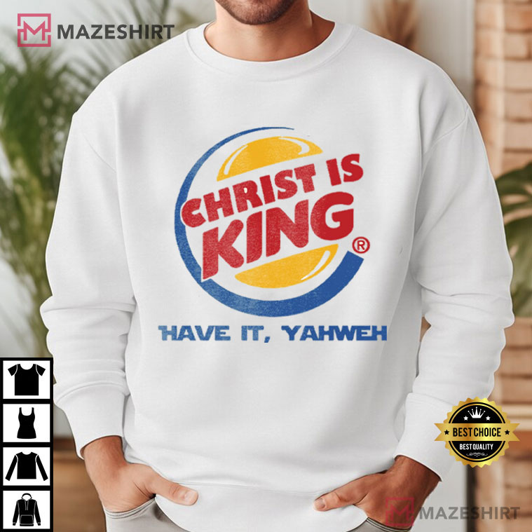 Having faith may be brave. Faith can provide happiness. Faith can even make you smile sometimes. The Christ Is King Funny Christian Faith Humor T-Shirt has a fun pop culture-inspired design with a timeless biblical statement. This makes for a design that is eye-catching, humorous, and based on faith.