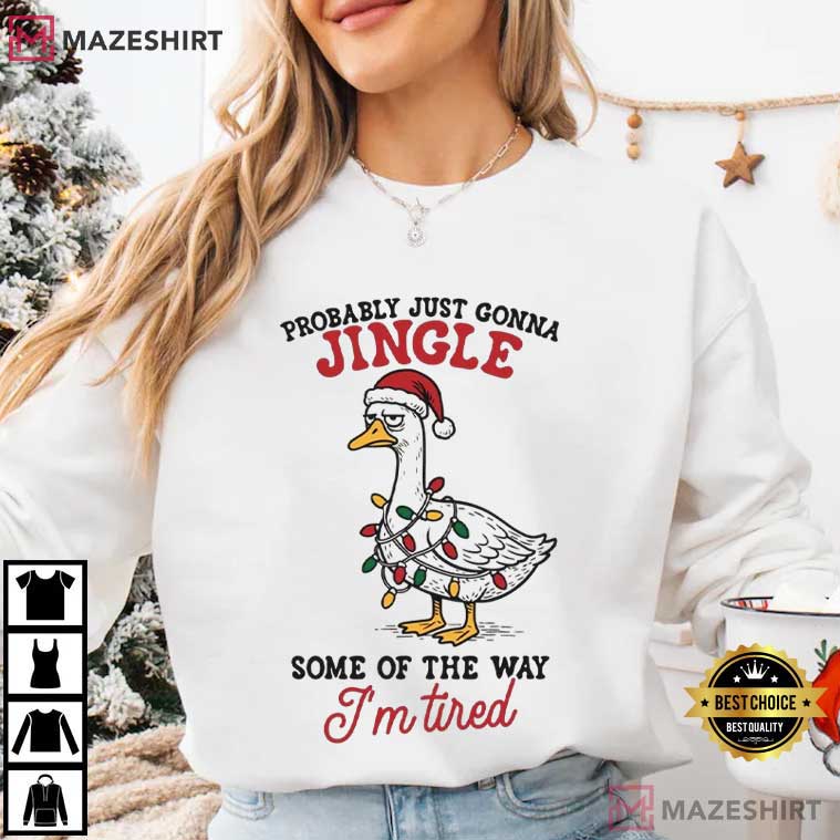 This Christmas Goose Holiday Humor Funny Sarcastic T-Shirt is excellent for people who adore Christmas but don’t always have the energy to be happy on command. The design shows a goose that looks sleepy, is covered in Christmas lights, wears a Santa hat, and has a look on its face that says, “I’m not impressed.” The funny phrase “Above and below the character” is above and below the character. “Probably just gonna jingle some of the way… I’m tired.” This is the perfect shirt for anyone who likes a blend of seasonal happiness and honest sarcasm.