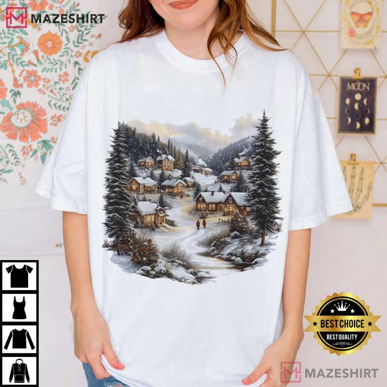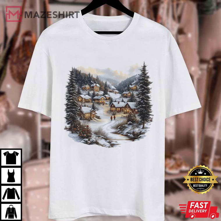 Christmas Winter Village Mountain Pine Trees Vintage T-Shirt – Christmas T-Shirt
