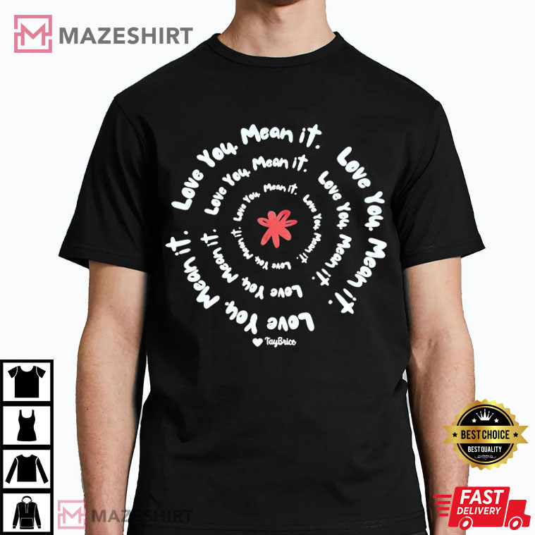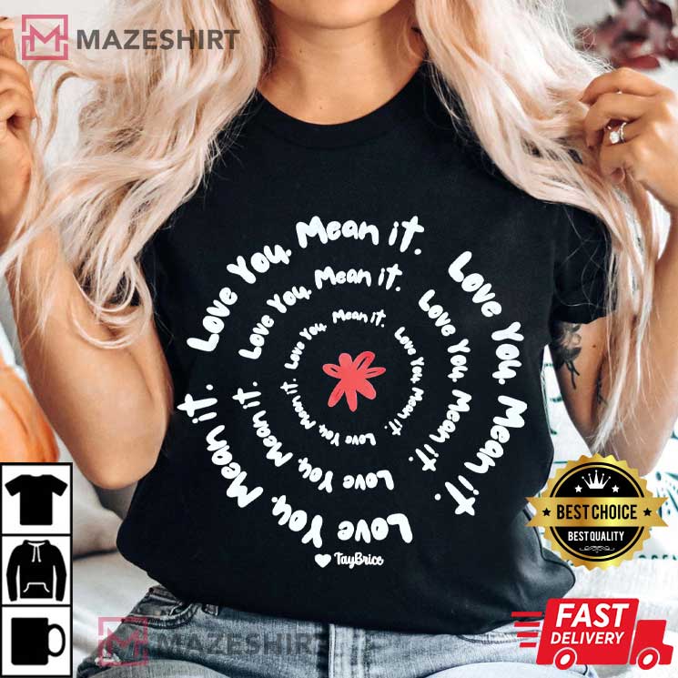 The Circle Love You Mean It T-Shirt lets you show your love with a touch of fun. This T-shirt isn’t just a shirt; it’s a lovely and funny way to show you care. It’s great for anyone who likes to laugh and have fun. This love T-shirt has a bright pink flower in the middle and a whirling circle of “Love You, Mean It” wording around it. It looks great against a black background.