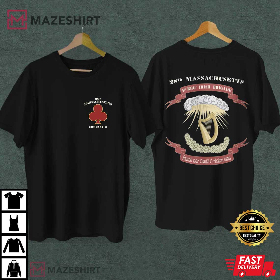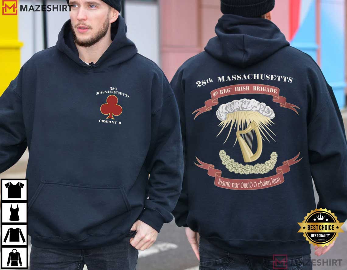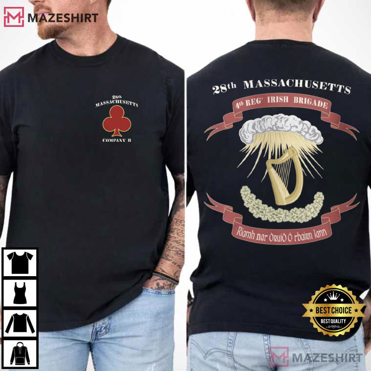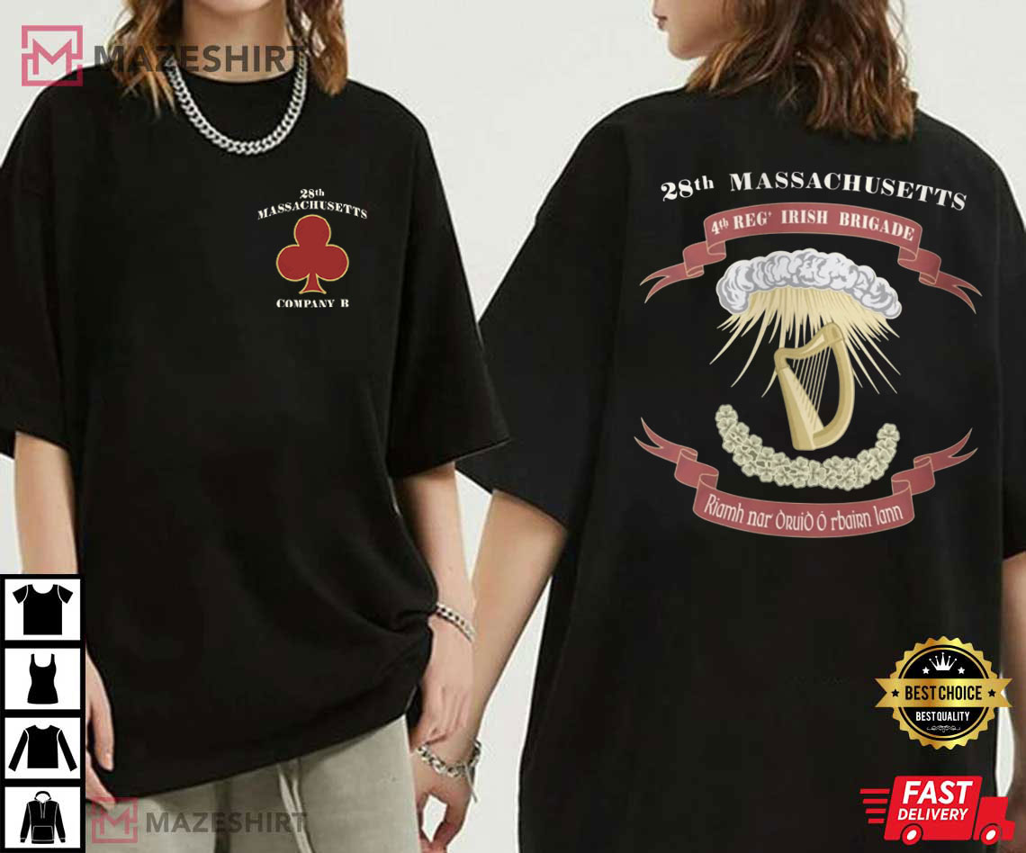 If you like expressing stories about the past via clothes, the Civil War 28th Massachusetts Company B Official T-Shirt is more than simply a graphic. It’s a monument to one of the most famous Irish battalions in American military history. This art connects the past and the present in a way that feels important, not merely decorative. It has symbolic elements that were carefully thought out.
