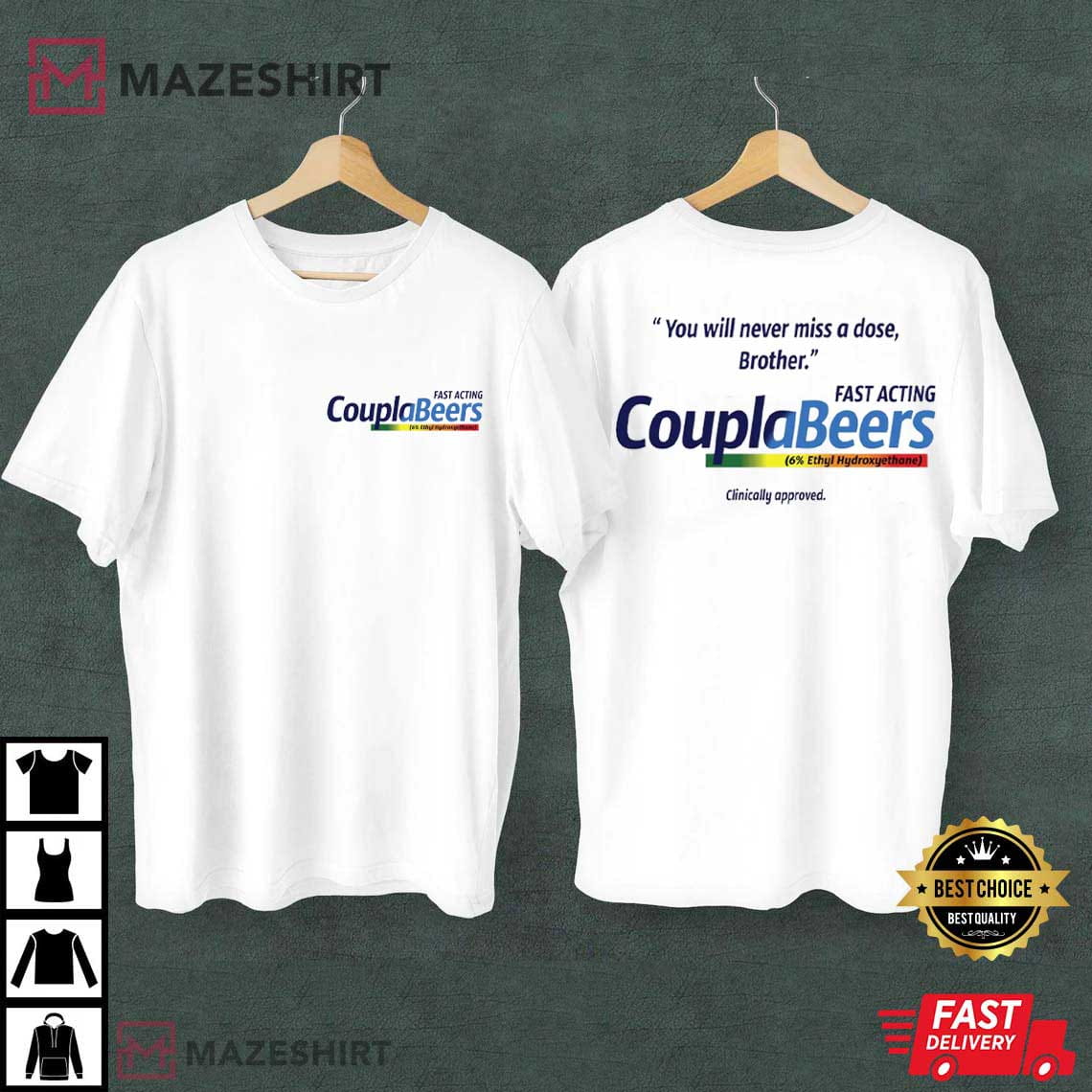 “Coupla Beers” is a phrase meaning “a couple of beers” or “a few beers,” and can be used to refer to a request for or a suggestion to drink a couple of beers.
