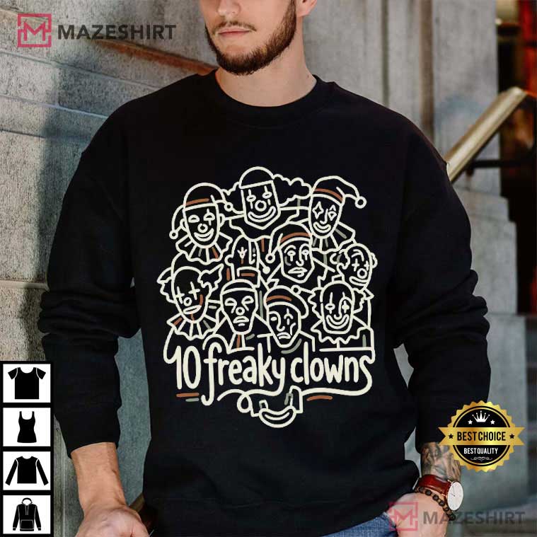 The “10 Freaky Clowns” Graphic T-Shirt is more than just a shirt; it’s a message. It’s odd, it’s courageous, and it doesn’t mind being different. If you’re ready to embrace the strange side of style, you should put this piece in your rotation.
