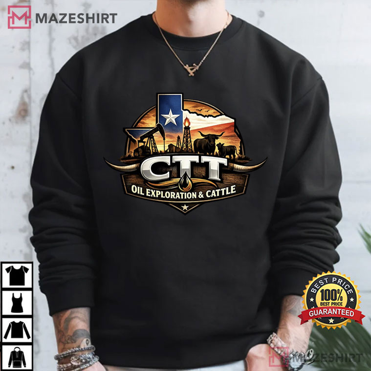 The CTT Oil Exploration And Cattle Landman Graphic T-Shirt is a tribute to the people who work in places where land, energy, and tradition come together. This shirt has a powerful emblem that combines oilfield grit with ranching tradition. It speaks to landmen, roughnecks, ranchers, and anybody who loves the backbone industries that keep rural America going.