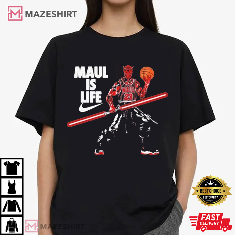 The Darth Maul Is Life Star Wars Disney Movie Fan Gift T-Shirt is the best shirt for Star Wars lovers who love a little anarchy. This Darth Maul T-Shirt has a tough-looking Darth Maul wearing a Chicago Bulls jersey with a Nike swoosh on it and holding a basketball and a double-bladed lightsaber. It has a crossover theme. The big “Maul Is Life” writing shouts dedication, mixing the Sith Lord’s threat with a fun reference to sports culture.