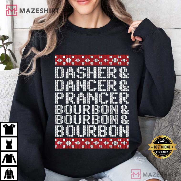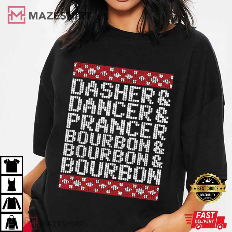 Dasher Dancer Prancer And Bourbon Christmas Holiday T-Shirt – christmas themed shirts, funny christmas shirts