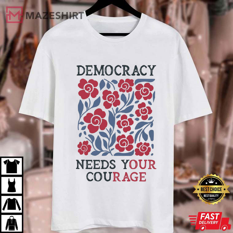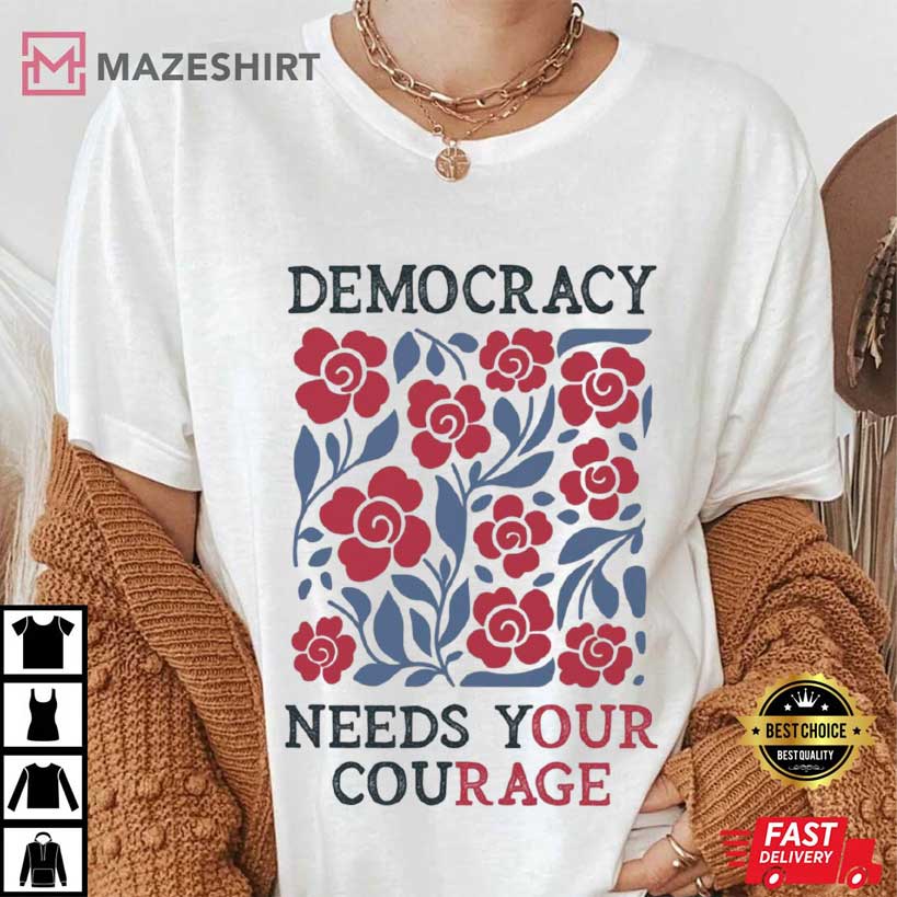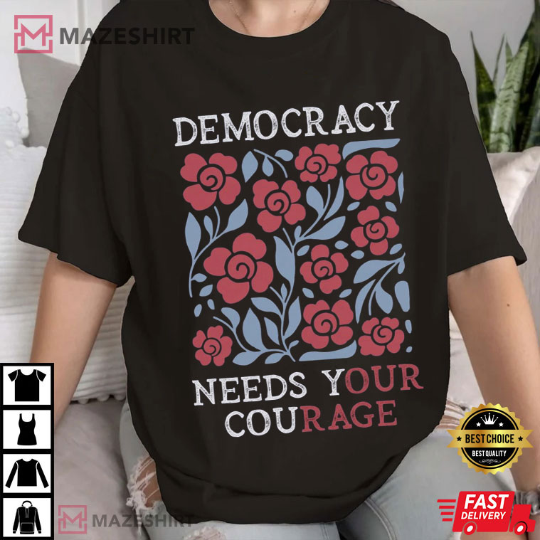 Are you ready to make a strong statement and stand up for what you believe in? The Democracy Needs Your Courage t-shirt is the perfect shirt for you since it combines action with a little bit of fun.