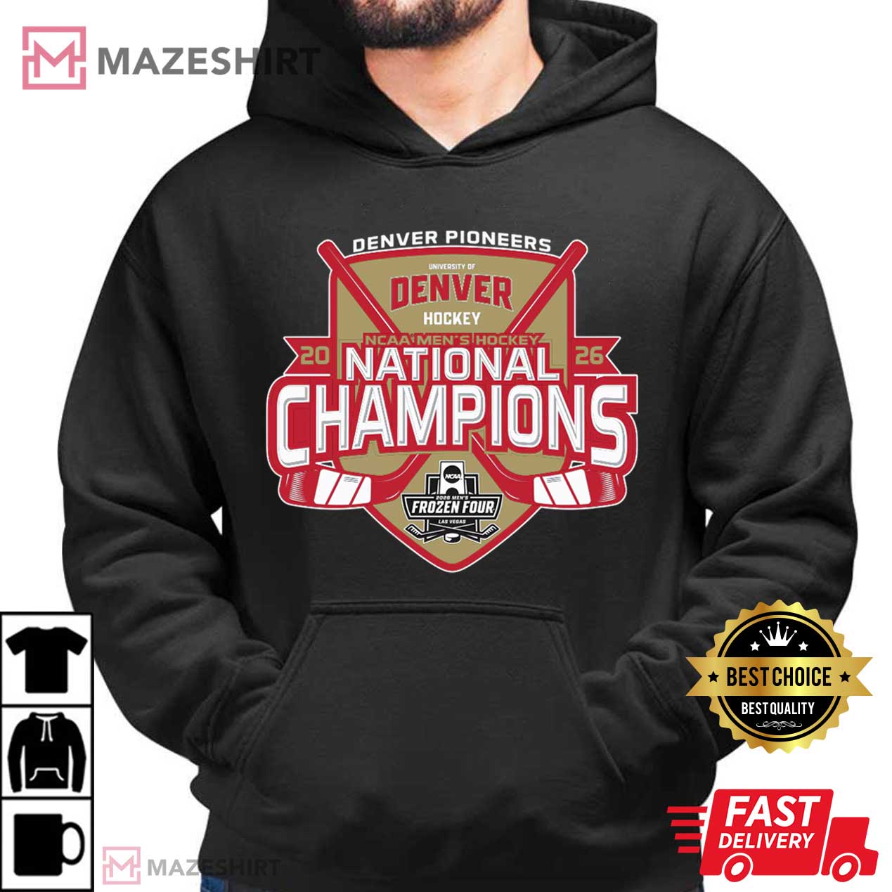 Denver National Champions Hockey Pioneers Badge NCAA T-Shirt – hockey t shirts, custom nhl shirts