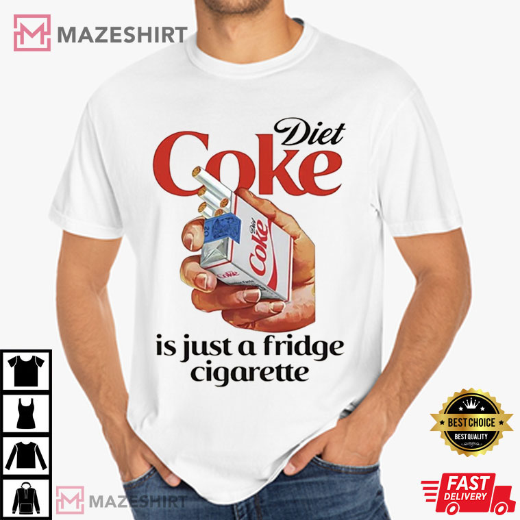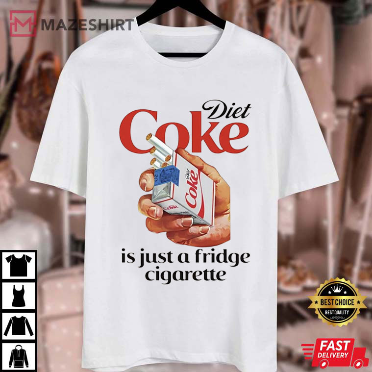 Hey, soda fans and meme fans! If you’ve ever opened a cold Diet Coke and felt that small thrill, this Diet Coke T-Shirt is going to be your new favorite piece of clothing. Think about this: A clean white t-shirt with a big, retro-style pack of cigarettes on it and a silver Diet Coke can peeking out. Below, in fun black letters, is the funny statement “Diet Coke is just a fridge cigarette.”