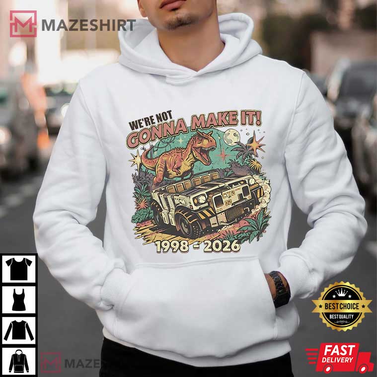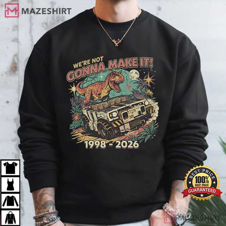 The Dinosaur Animal Kingdom “We’re Not Gonna Make It” Inspired T-Shirt is a love letter to chaos, nostalgia, and the dark comedy that only people who have been to theme parks for a long time can really understand. This shirt will seem familiar to you if you’ve ever smiled through minor panic, weathered a rocky trip, or recited that famous line with friends afterward.