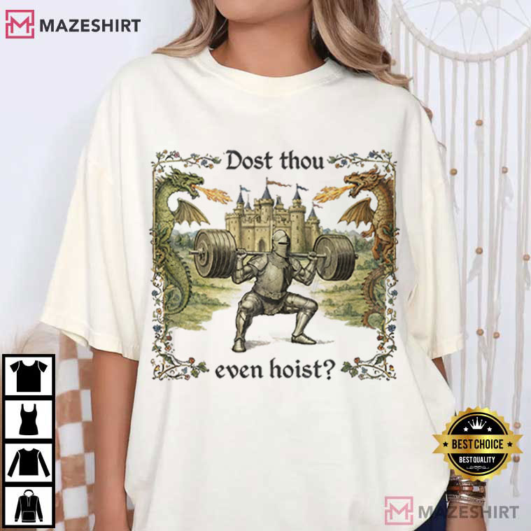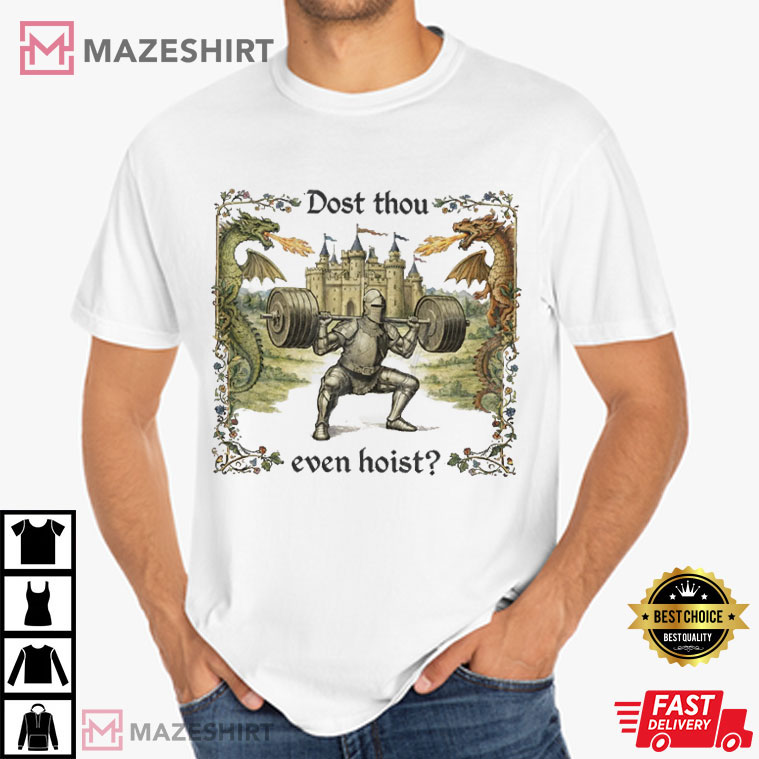 This design is the perfect answer to the question of what a gym session in the Middle Ages would look like. The Dost Thou Even Hoist Medieval Gym Retro Funny T-Shirt is the funniest way to mix old-fashioned imagination with modern gym culture.