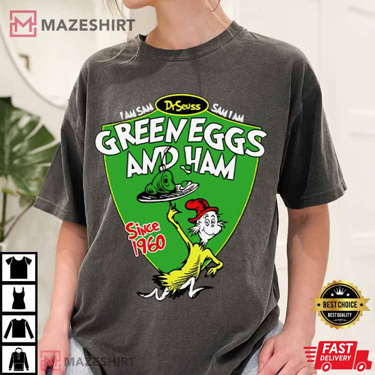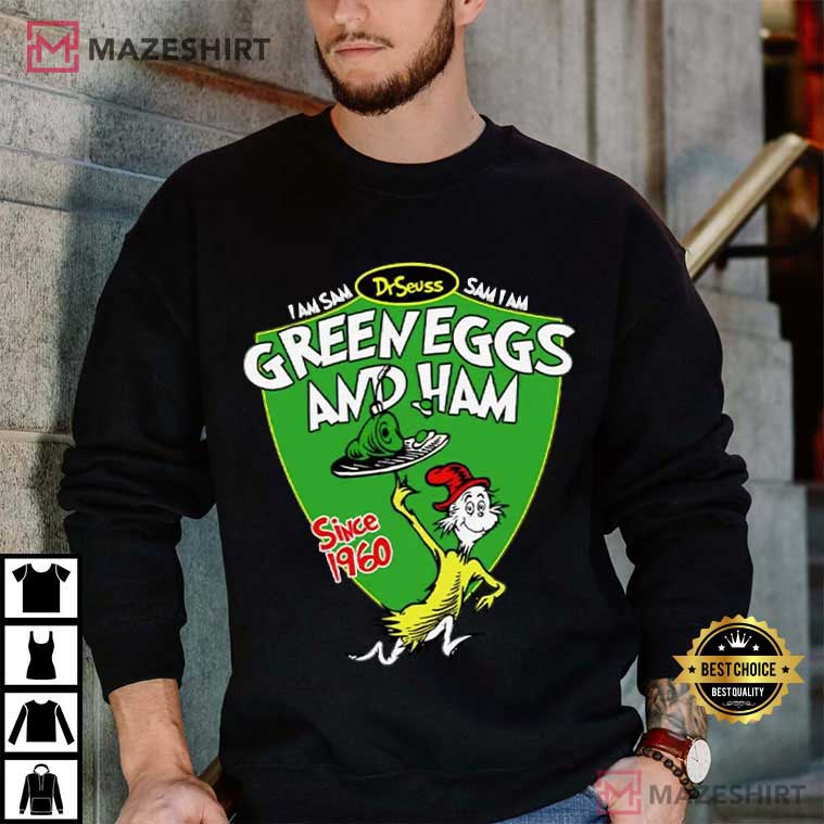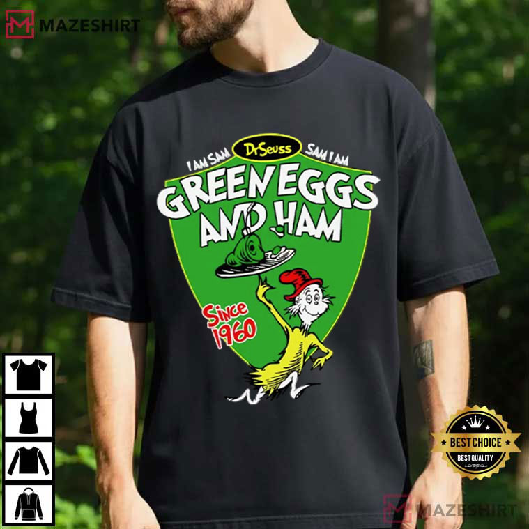 The Dr. Seuss I Am Sam Green Eggs And Ham Book Lover T-Shirt is bright, nostalgic, and easy to spot. It honors one of the best children’s books ever written. This design shows the happy character Sam-I-Am with his famous platter of green eggs and ham. It embodies the fun mood that has introduced generations to the love of reading.