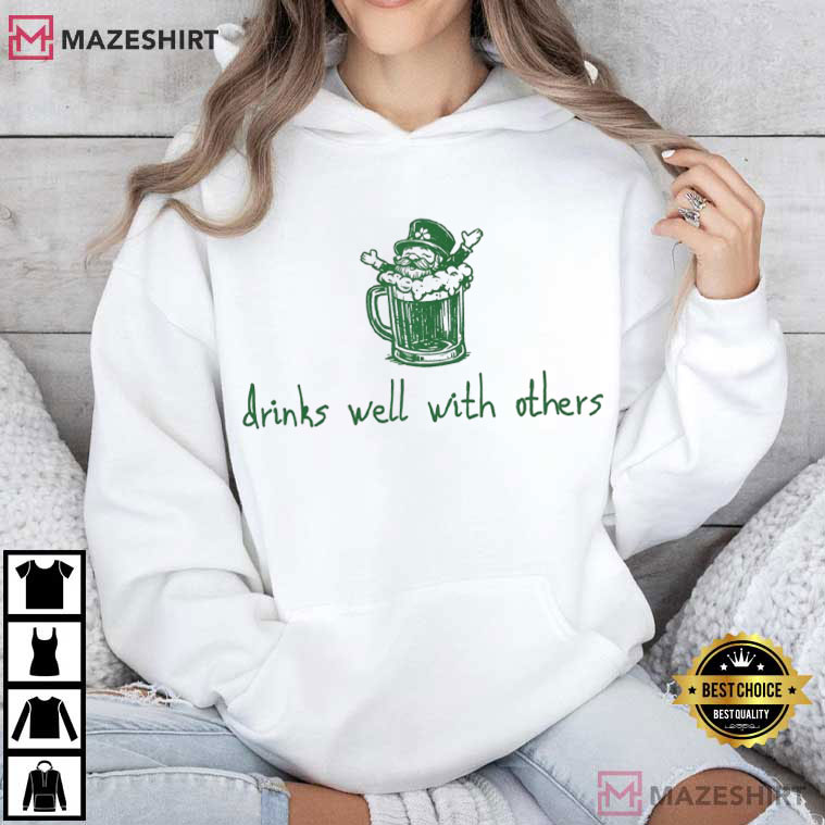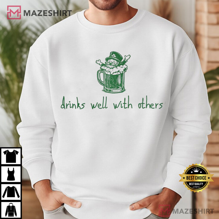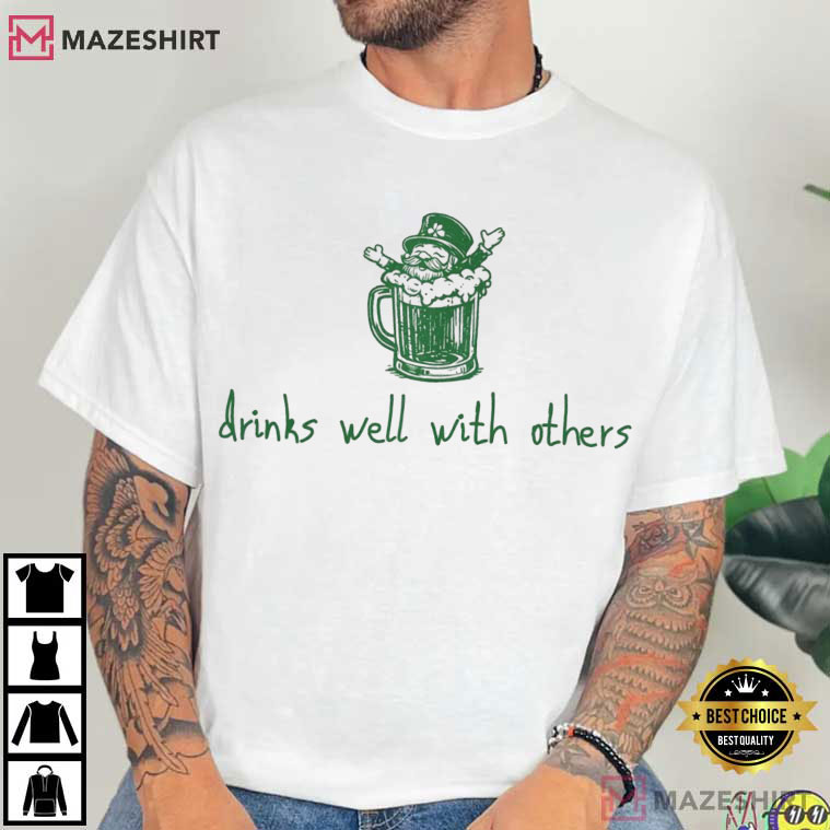 Drinks Well With Others Leprechaun Beer St Patrick's Day T-Shirt – graphic tees men, graphic tees women, unique graphic t shirts