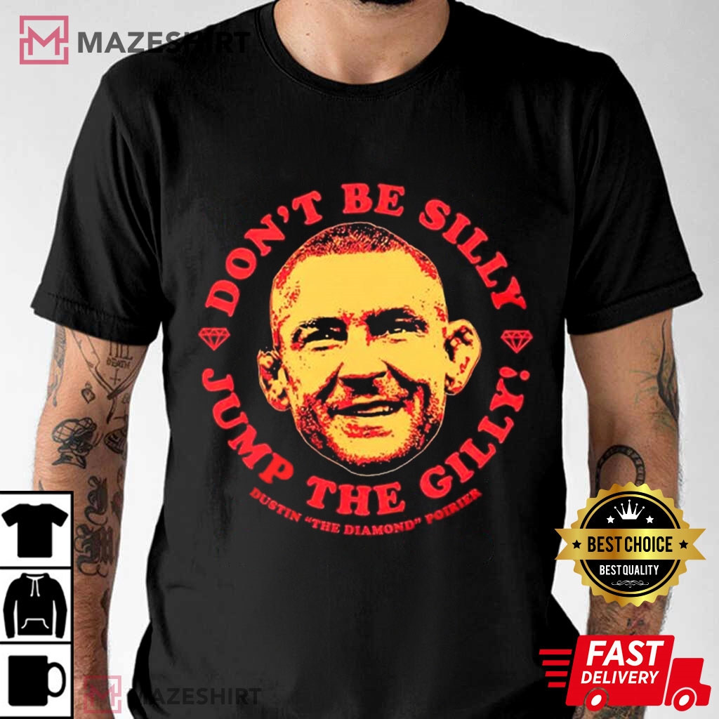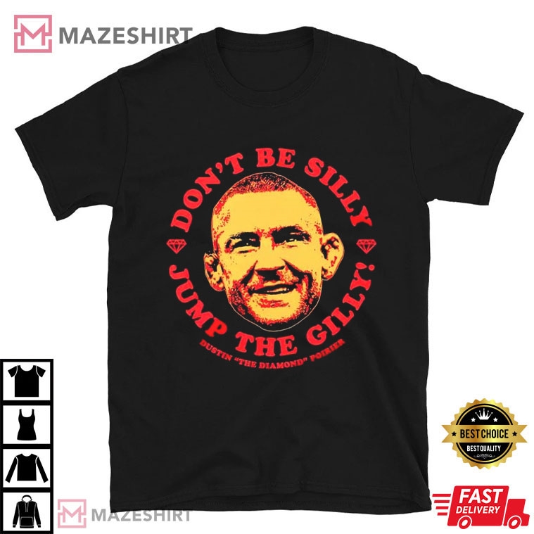 The Dustin Poirier Don’t Be Silly Jump The Gilly T-Shirt honors MMA legend Dustin Poirier’s tenacity. This shirt is a favorite among MMA fans and available on multiple sites. Poirier was known as “Dustin The Diamond Poirier” for his hardness and resilience. Hard and brilliant, the diamond represents Poirier’s battling attitude.