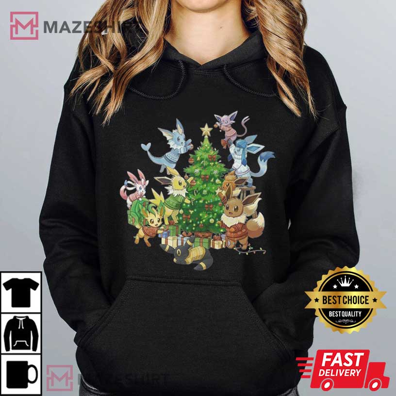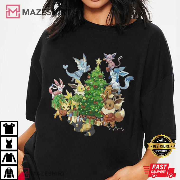 This Eeveelution Gamer Christmas Poke Monster T-Shirt brings back memories of classic monster collecting to a comfortable winter atmosphere. It’s perfect for when you need a little nostalgia over the holidays. The design shows the whole Eeveelution family around a decorated Christmas tree, with each one showing off its own individuality while they all celebrate together. Right in the middle of it all, you’ll see fan-favorite forms like Vaporeon, Jolteon, Flareon, Umbreon, Espeon, Leafeon, Glaceon, Sylveon, and of course Eevee.